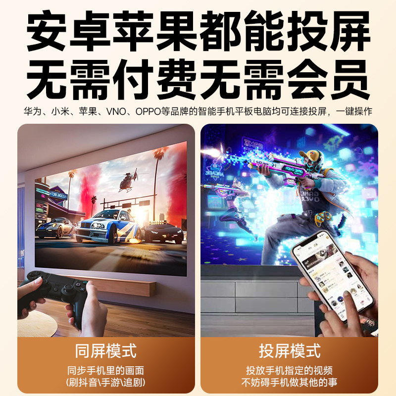 免费试用/2026新款4K投影仪家用超高清无需幕布客厅卧室智能家庭影院小型便携宿舍学生手机投屏墙WIFI投影机