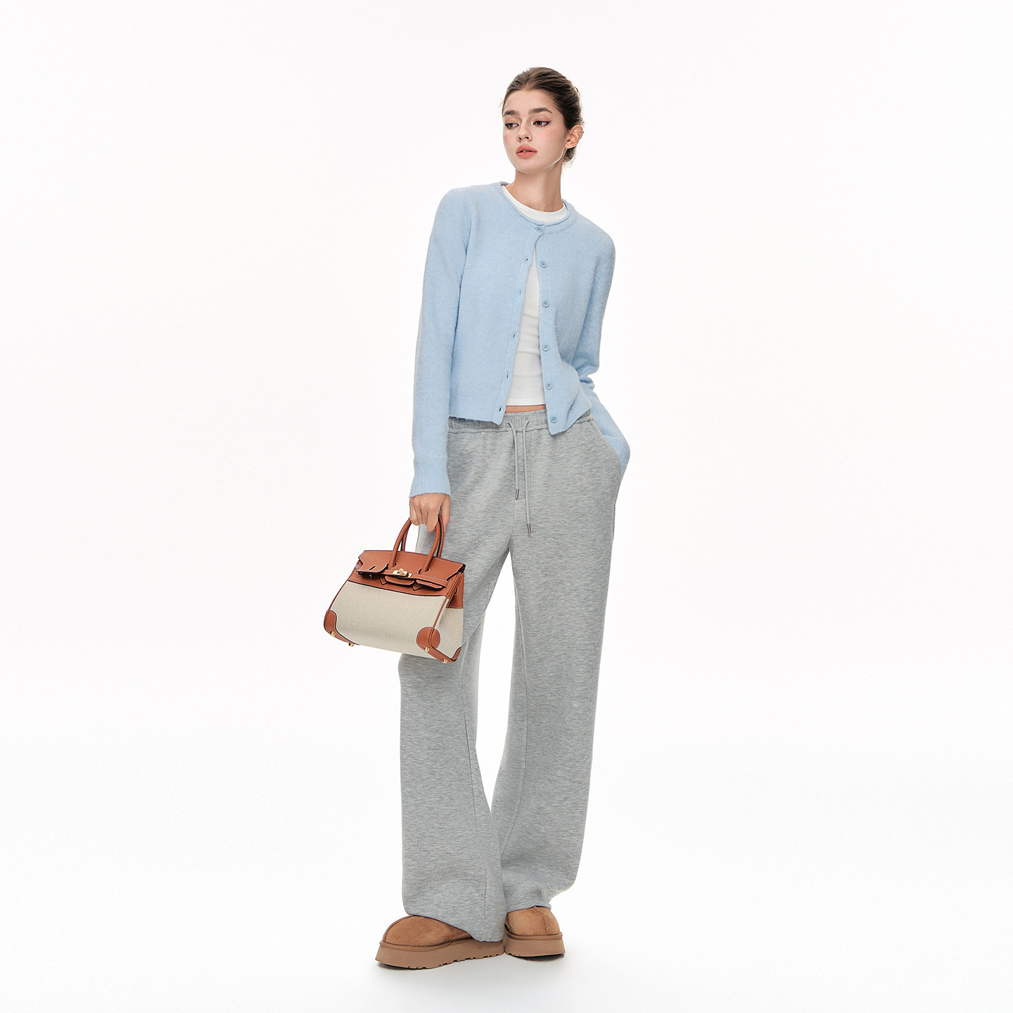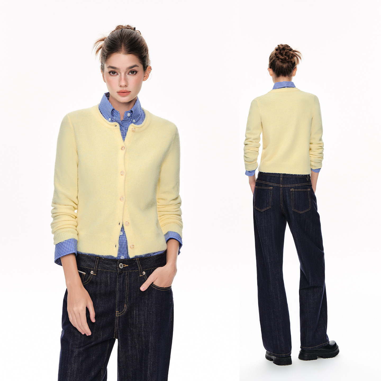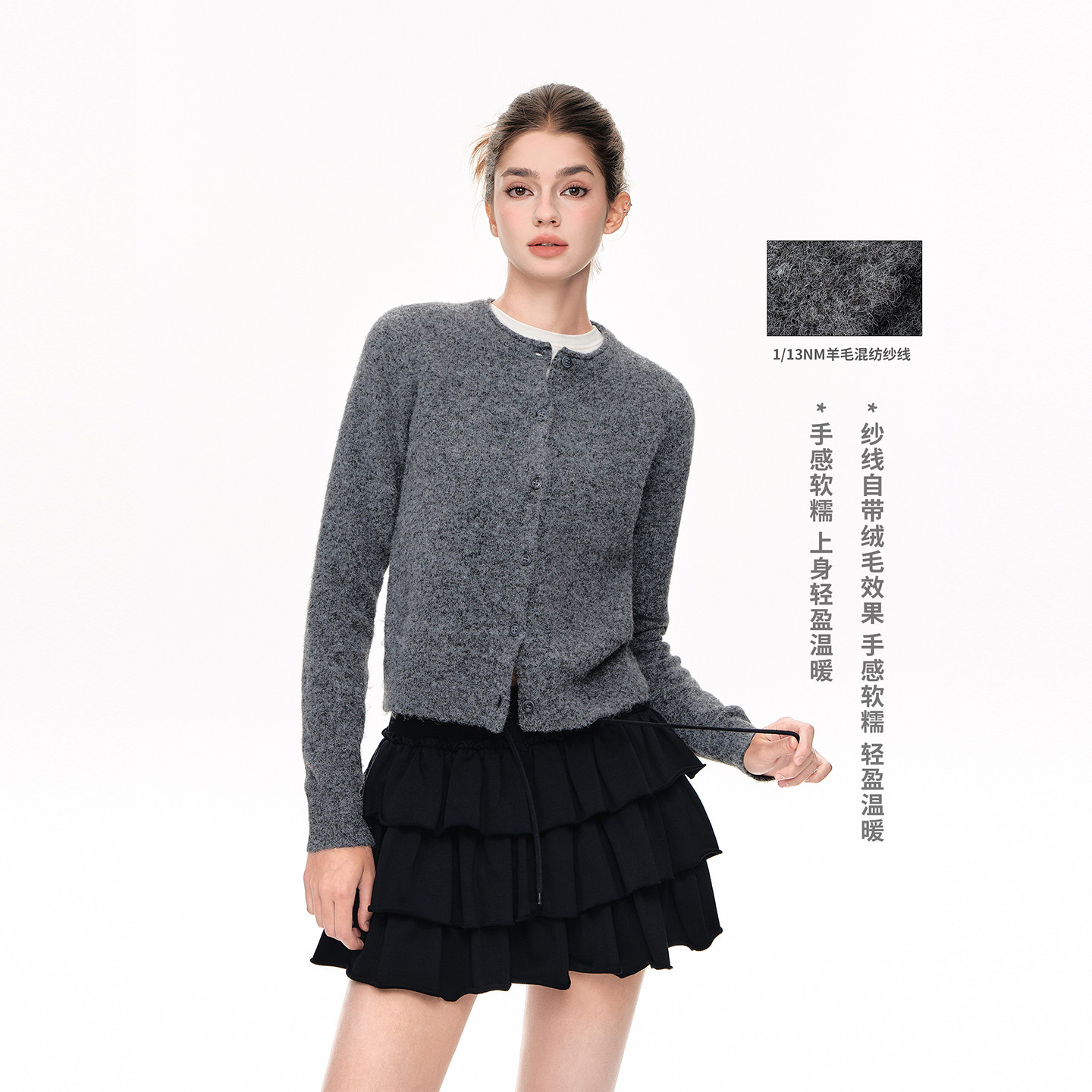 CLIMAX VISION软糯温暖绒毛感羊毛混纺卷边圆领复古针织开衫毛衣