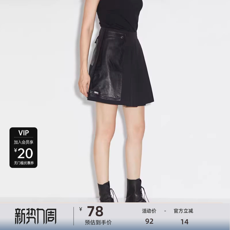 sdeer圣迪奥女装个性字母胶印皮质拼接A字百褶短裙S21381302