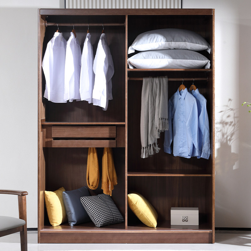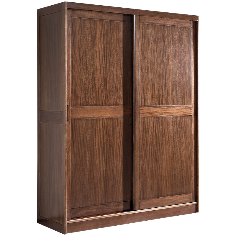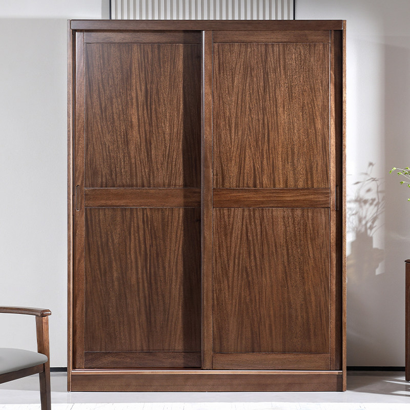 全实木推拉门衣柜家用卧室胡桃木简约现代趟门大衣橱移门定制衣柜