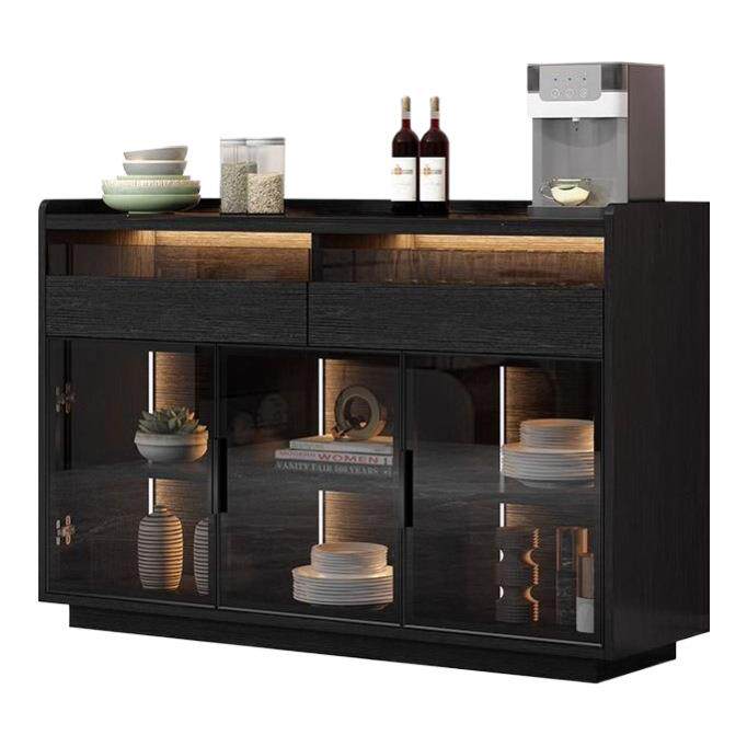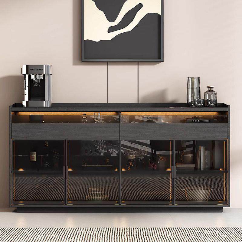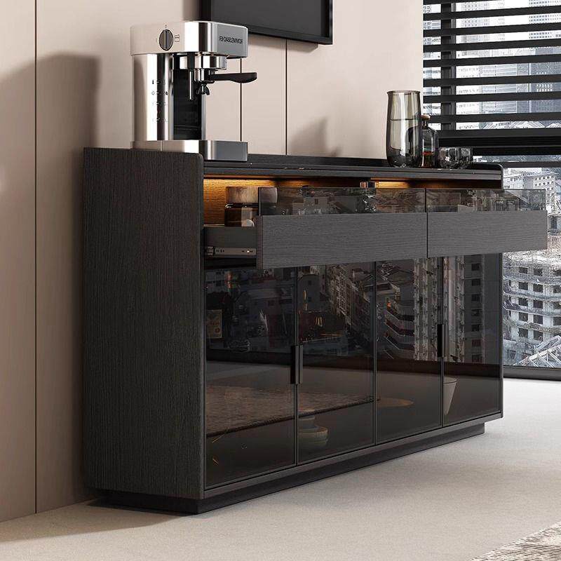 黑色岩板餐边柜客厅家用轻奢简约现代厨房边柜茶水柜新款
