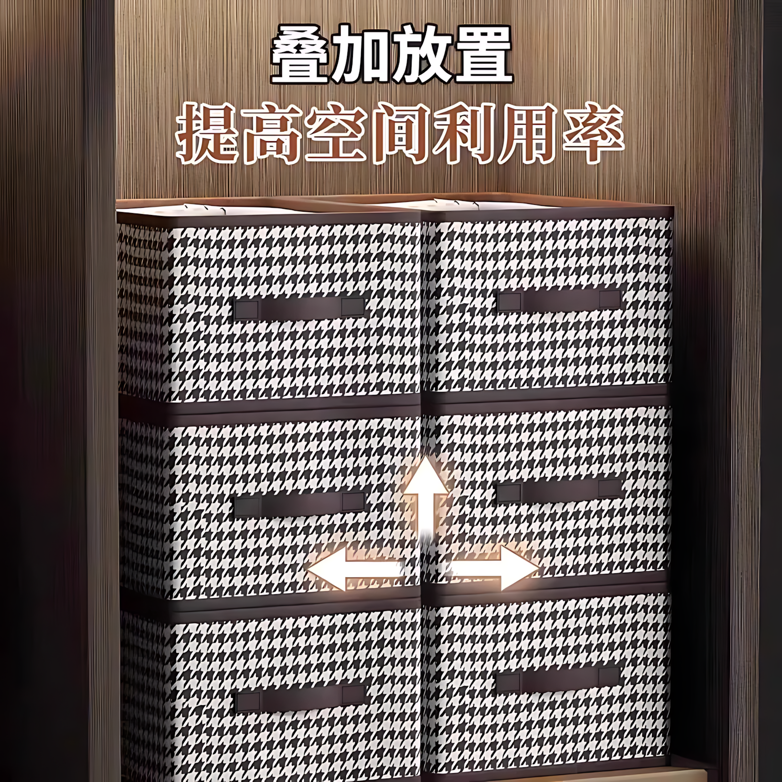 衣服收纳箱千鸟格家用衣柜分层整理收纳神器放衣物布艺折叠收纳筐