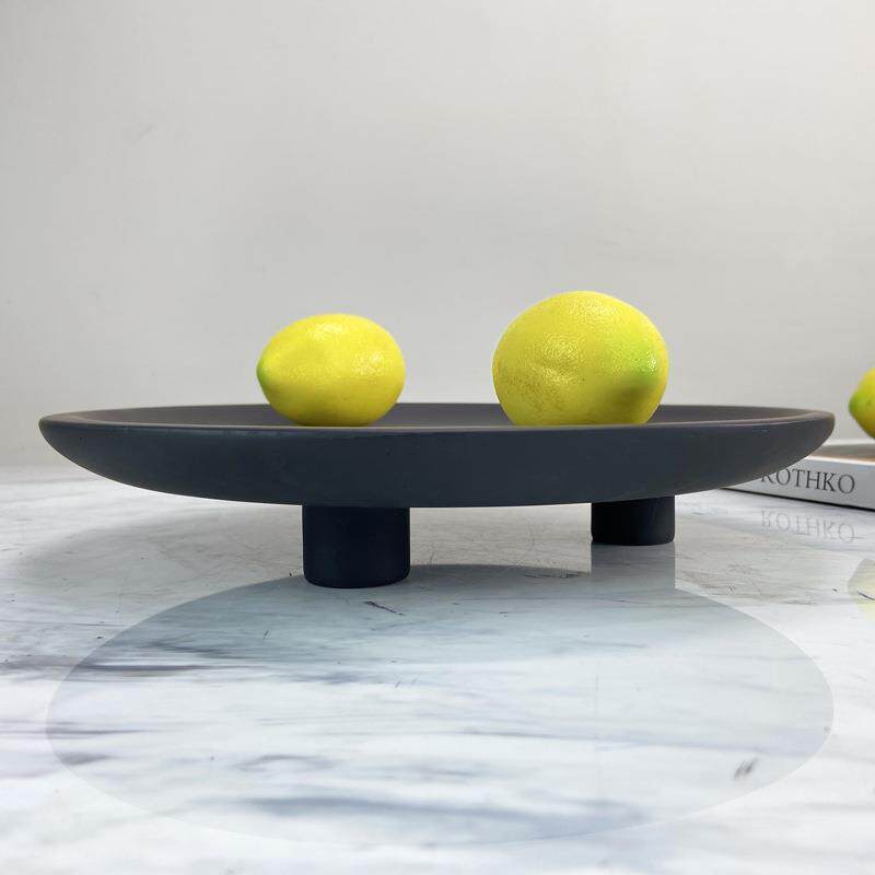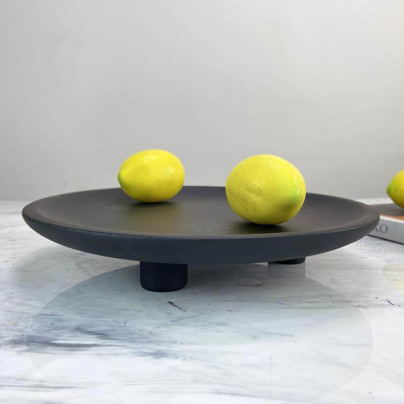 现代简约三脚托盘黑色树脂摆件厨房客厅酒楼米兰时尚轻装饰品