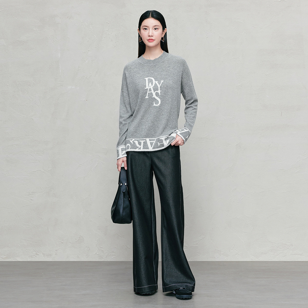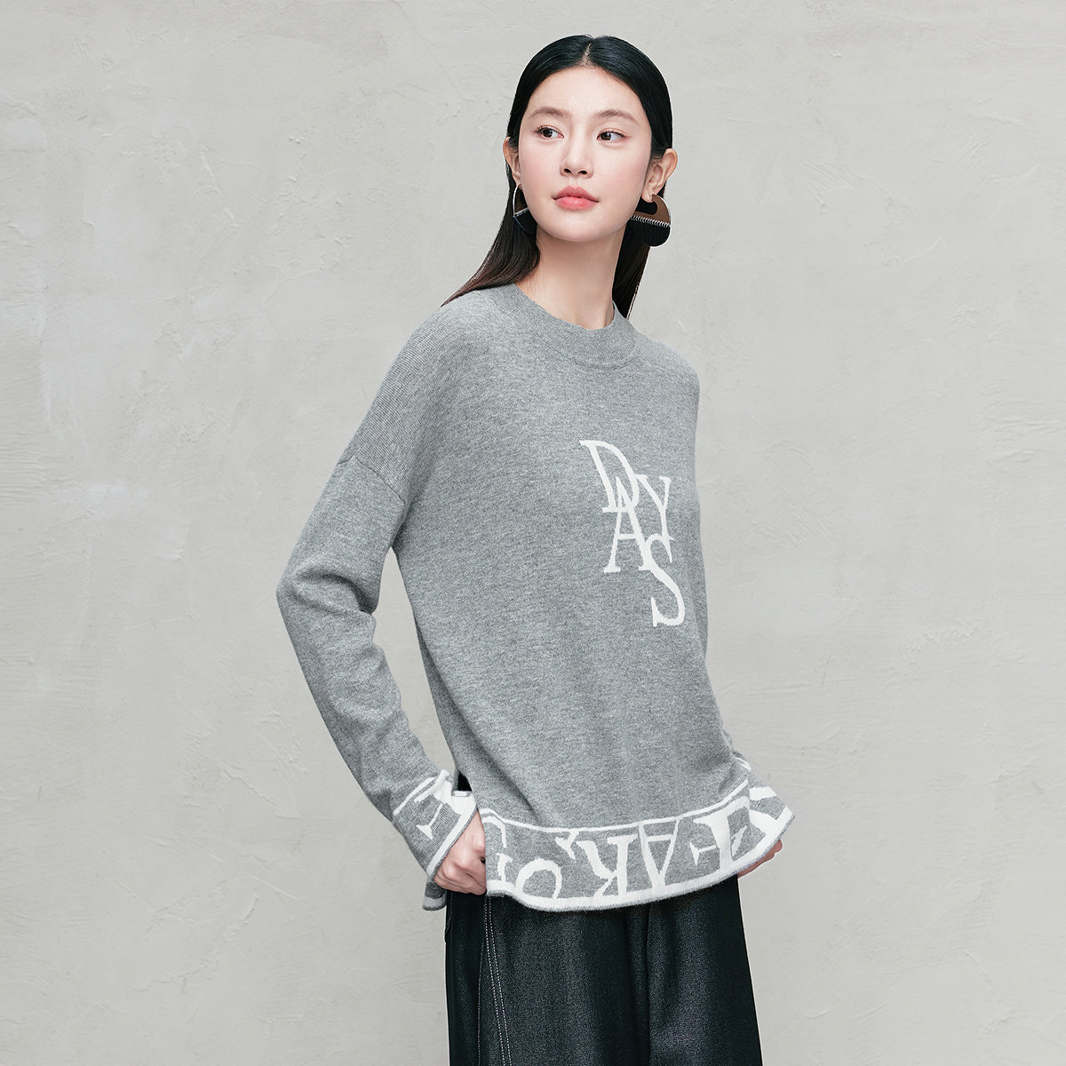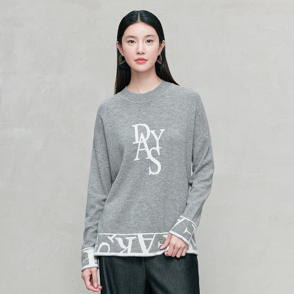 FINITY菲妮迪针织衫2025年冬季新款简约气质提花灰色保暖羊绒衫女