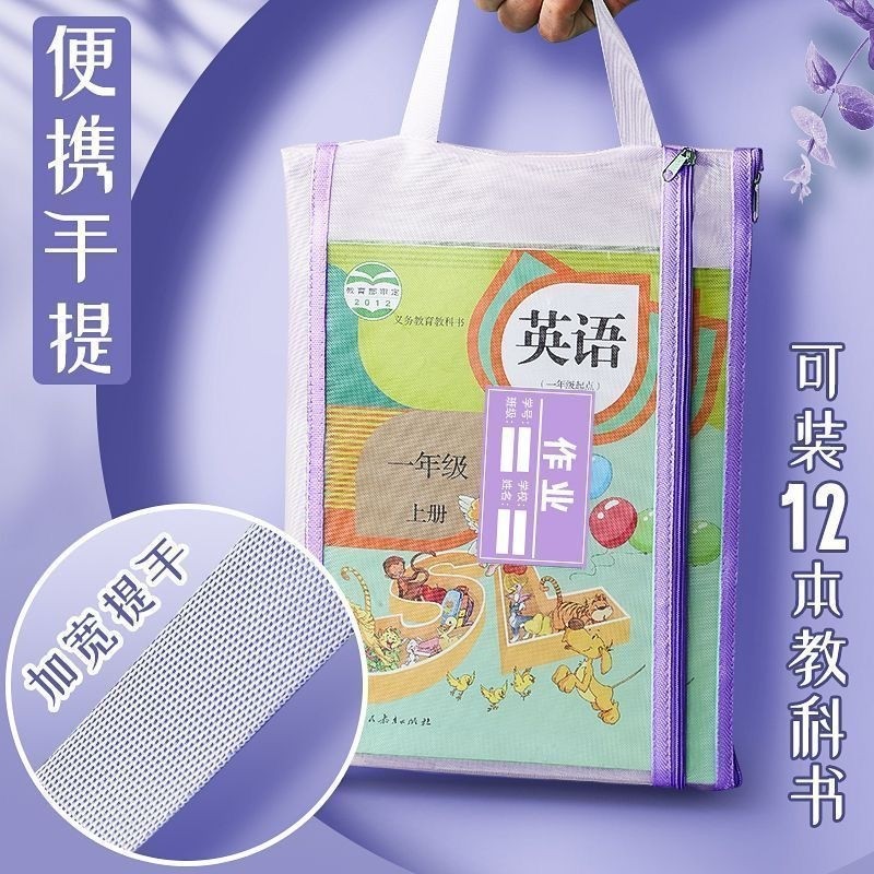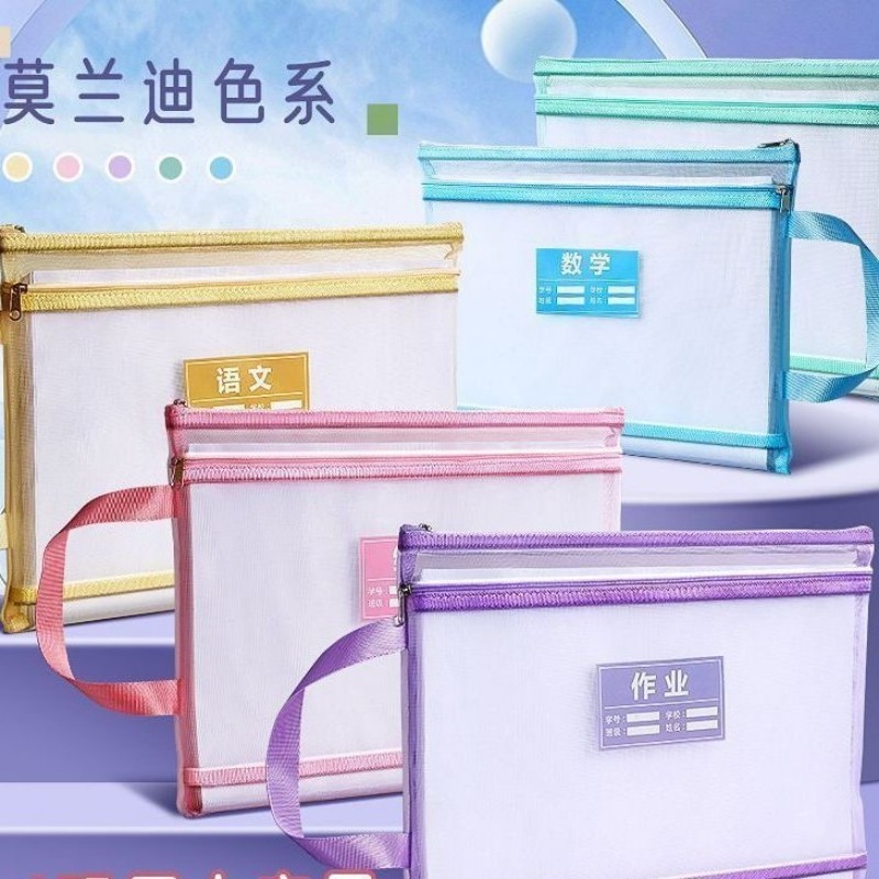 学科科目分类文件袋拉链式试卷收纳袋小学生双层大容量用A4透明网纱书本课本分科资料袋学习袋装书作业补习袋
