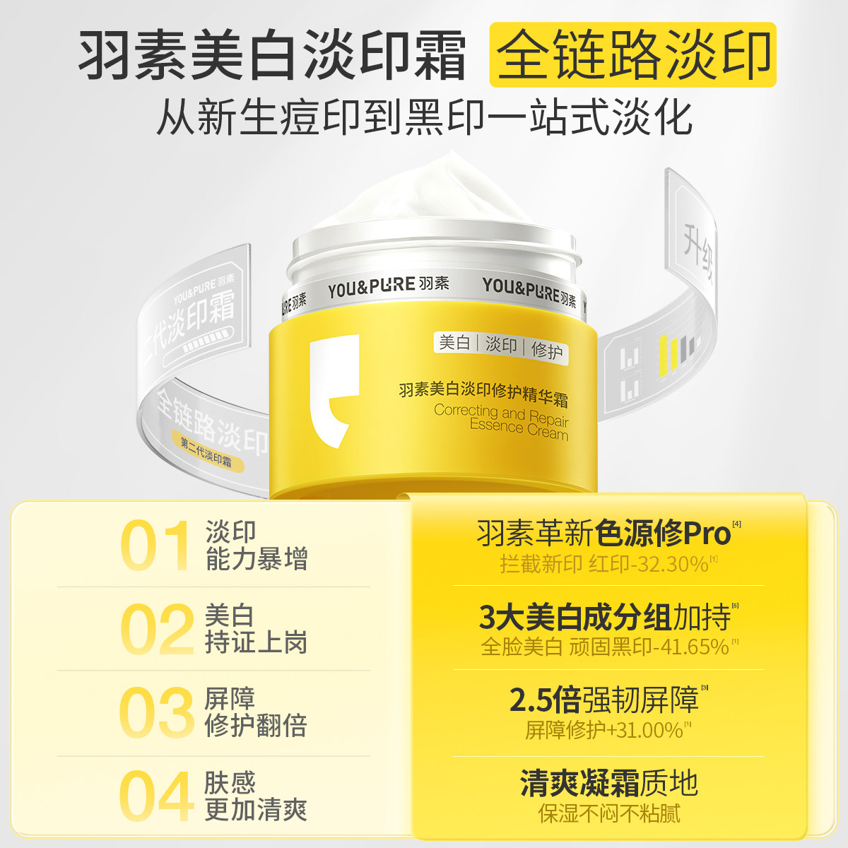 【全新升级】羽素美白淡印修护精华霜祛红痘印黑印控油焕亮保湿霜