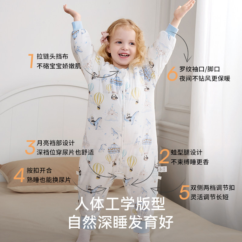 贝肽斯[肽柔]婴儿睡袋秋冬款儿童宝宝防踢被恒温分腿睡袋四季通用