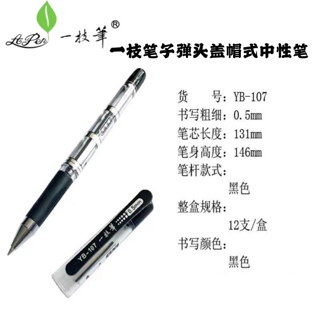 一枝笔中性笔YB107高颜值透明杆0.5子弹头学生碳素笔商务办公签字