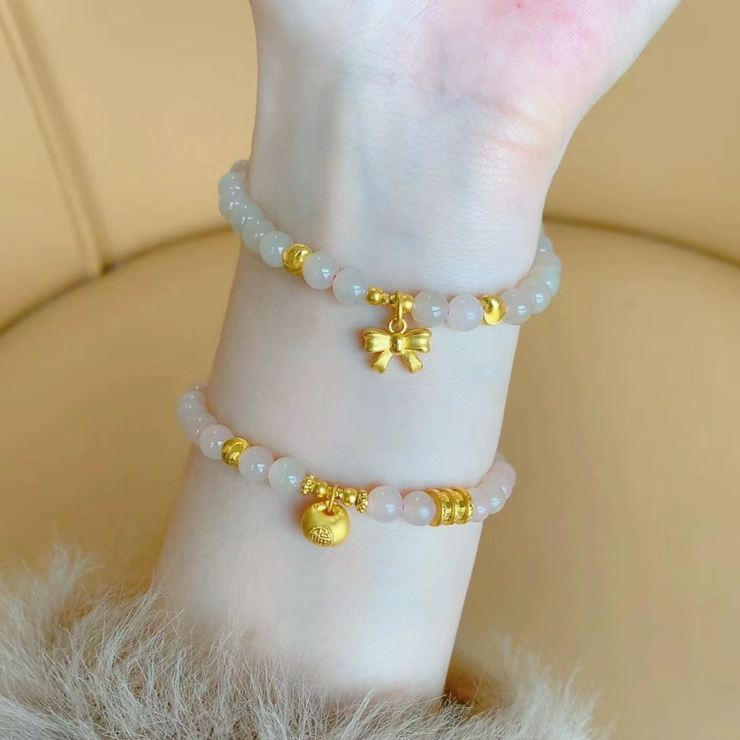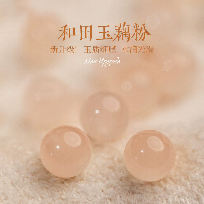 天然和田玉藕粉色散珠肤色串珠手串项链珠子diy玉石黄金配饰手链