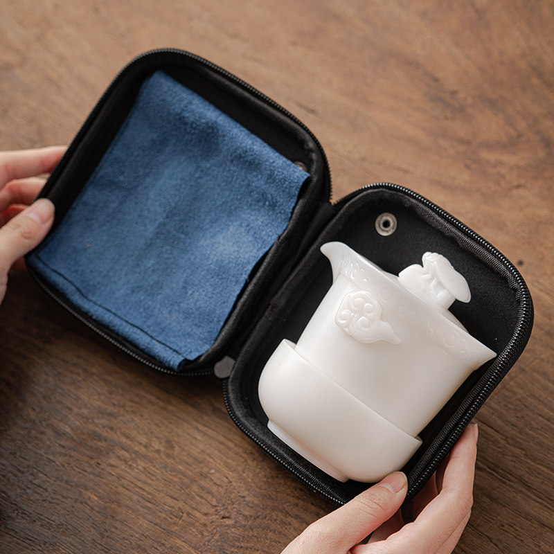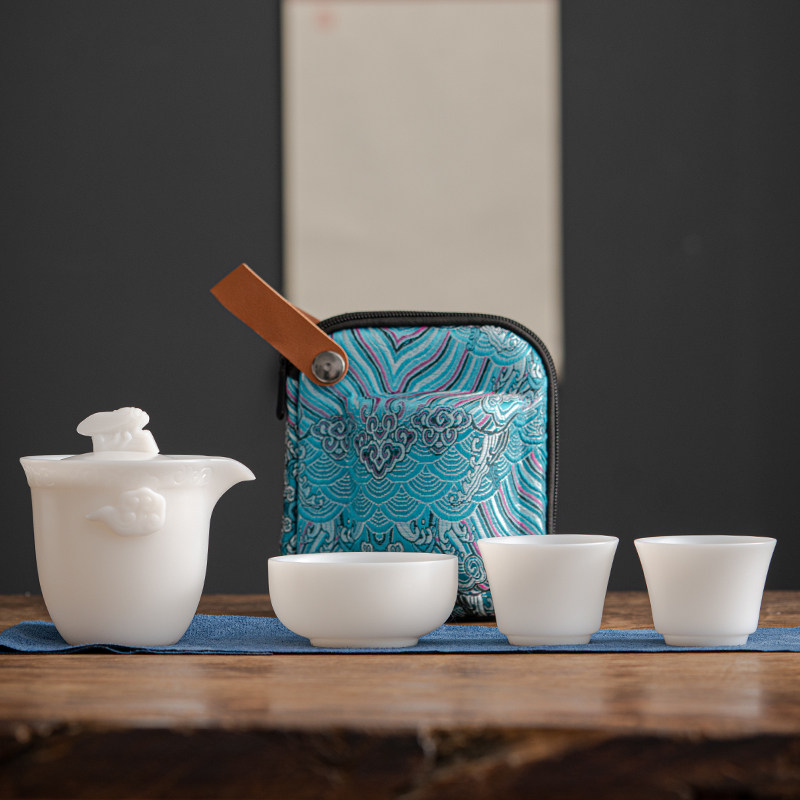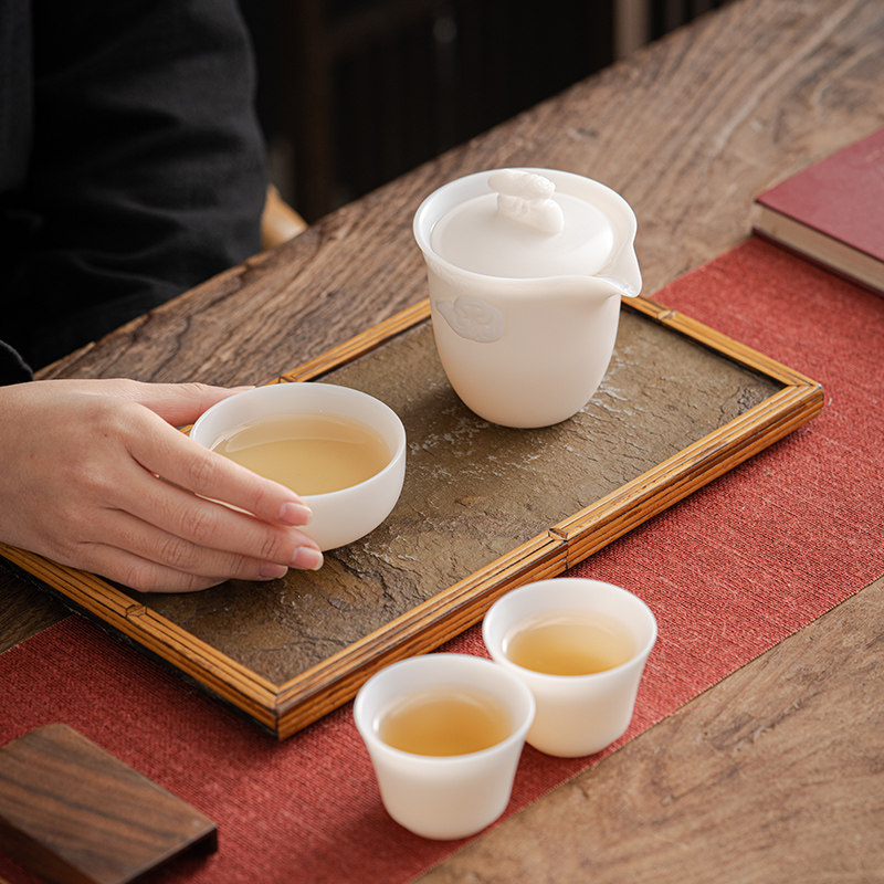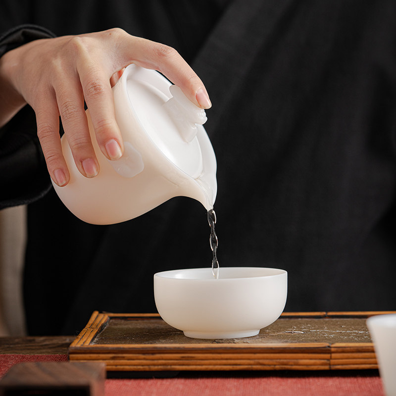 唐舍一鸣惊人冰种羊脂玉瓷快客杯一壶三杯旅行茶具套装白瓷泡茶壶