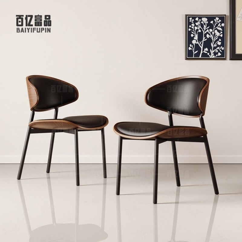 轻奢侘寂风餐椅皮软包设计师现代弯曲木咖啡厅实木椅子家用书房椅