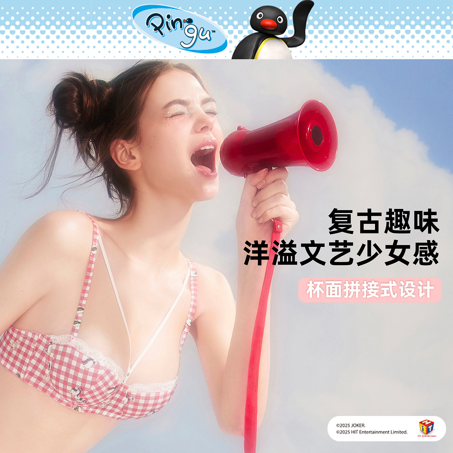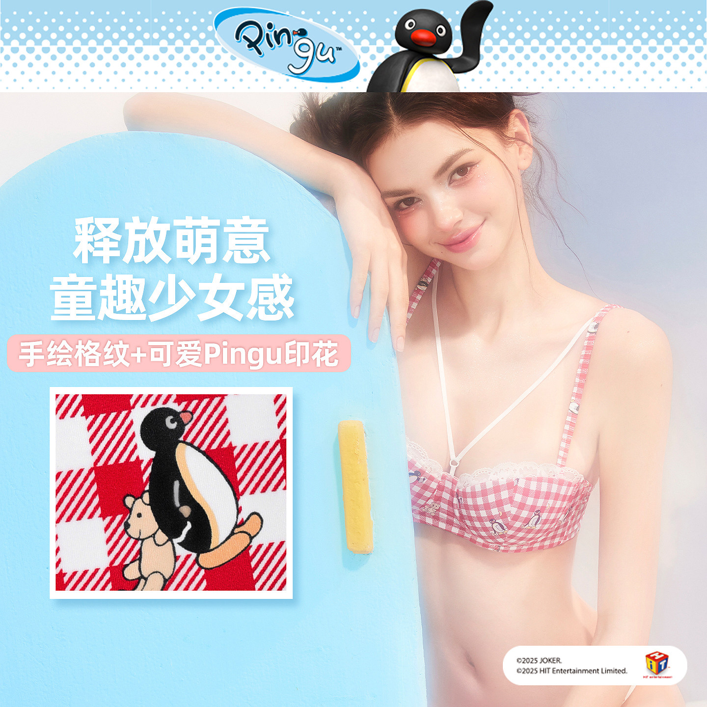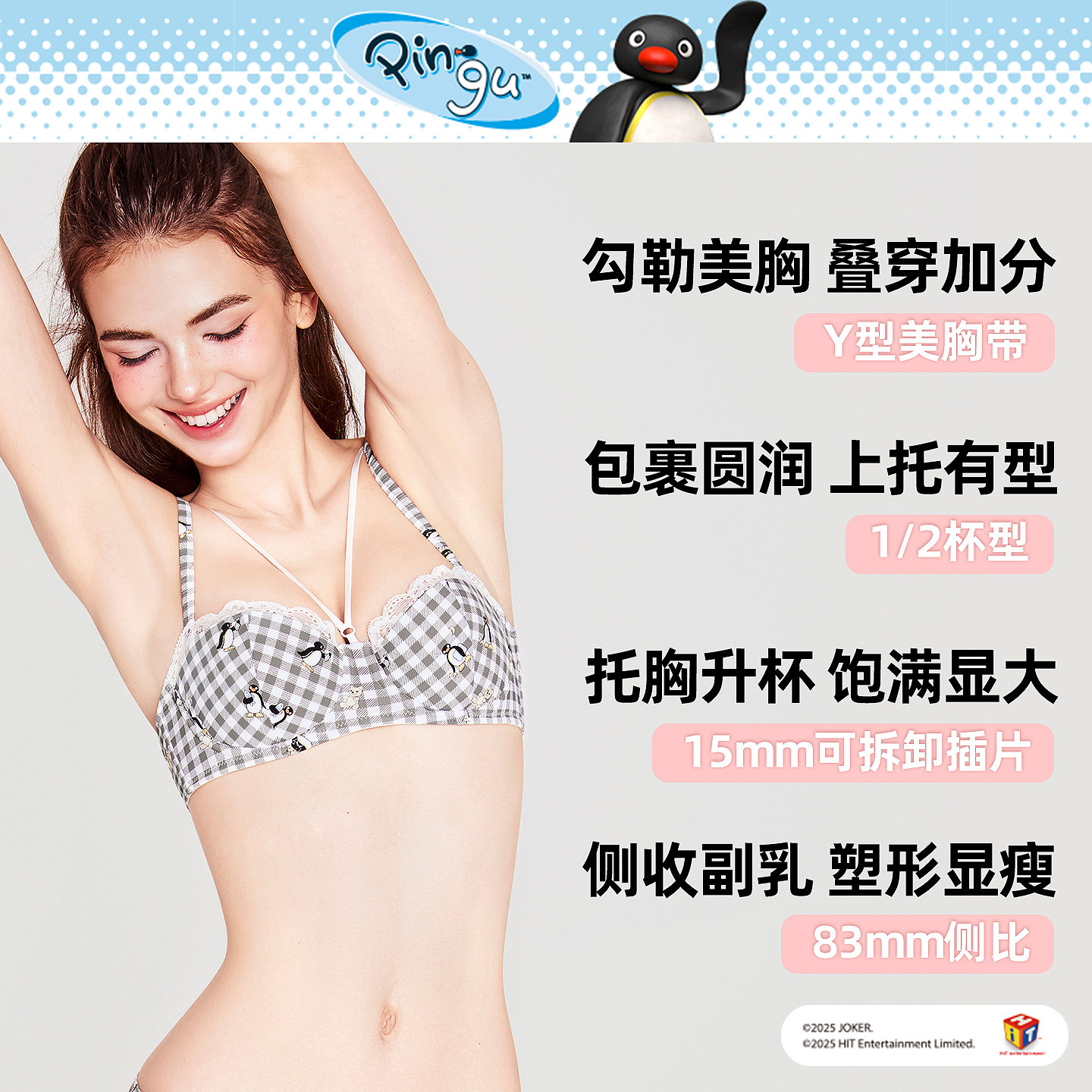 好奇蜜斯Pingu联名小胸聚拢大胸显小文胸罩套装显大25夏薄防下垂