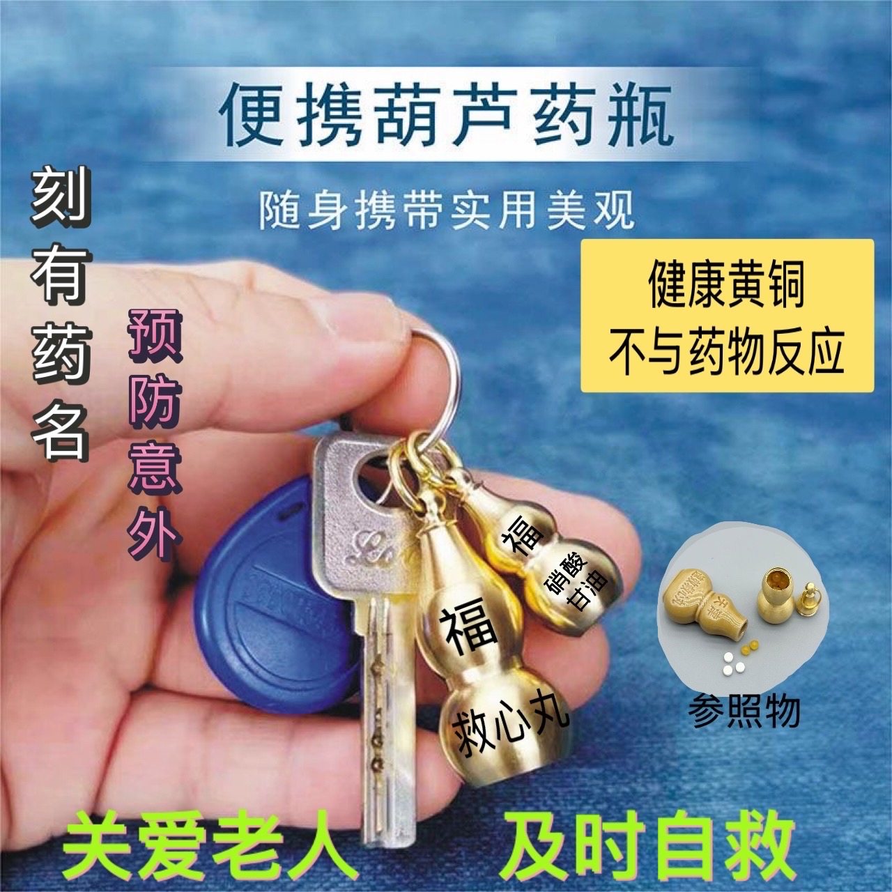装救心丸空心葫芦随身便携小药盒黄铜迷你钥匙扣硝酸甘油密封药瓶
