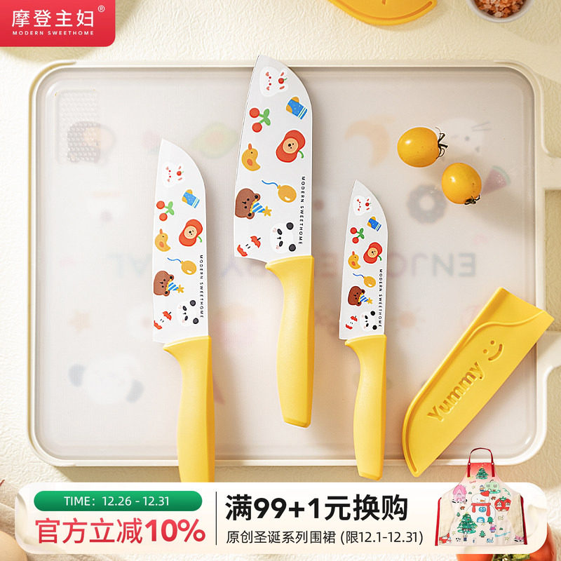 摩登主妇熊猫水果刀家用婴儿宝宝辅食刀切菜刀专用刀具套装陶瓷刀