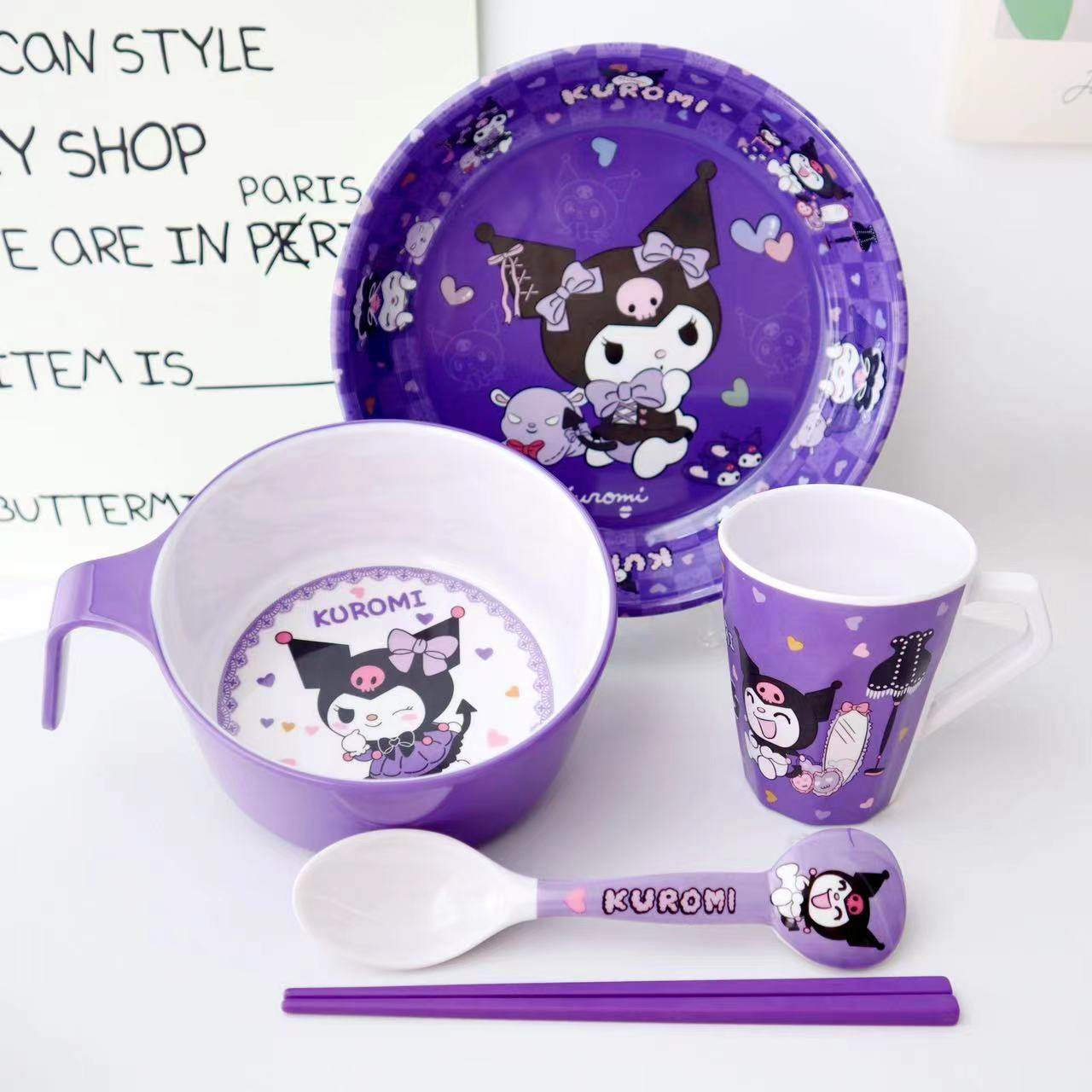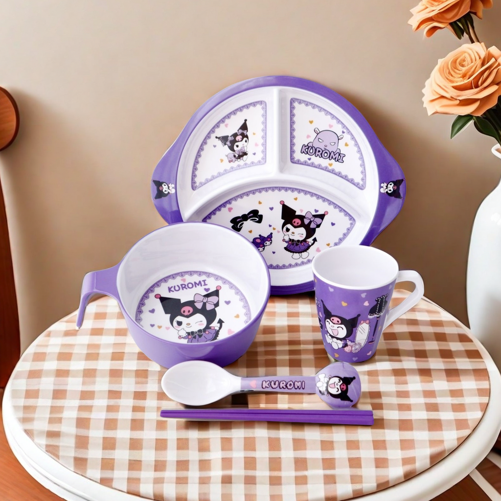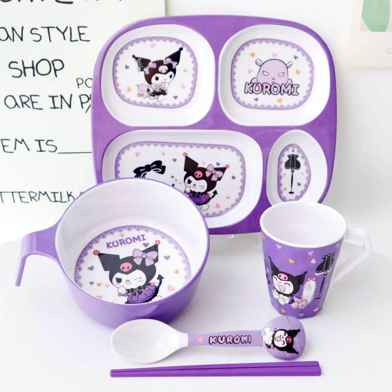 库洛米儿童餐具卡通可爱把手防烫耐摔宝宝餐盘密胺手柄碗筷勺杯盘