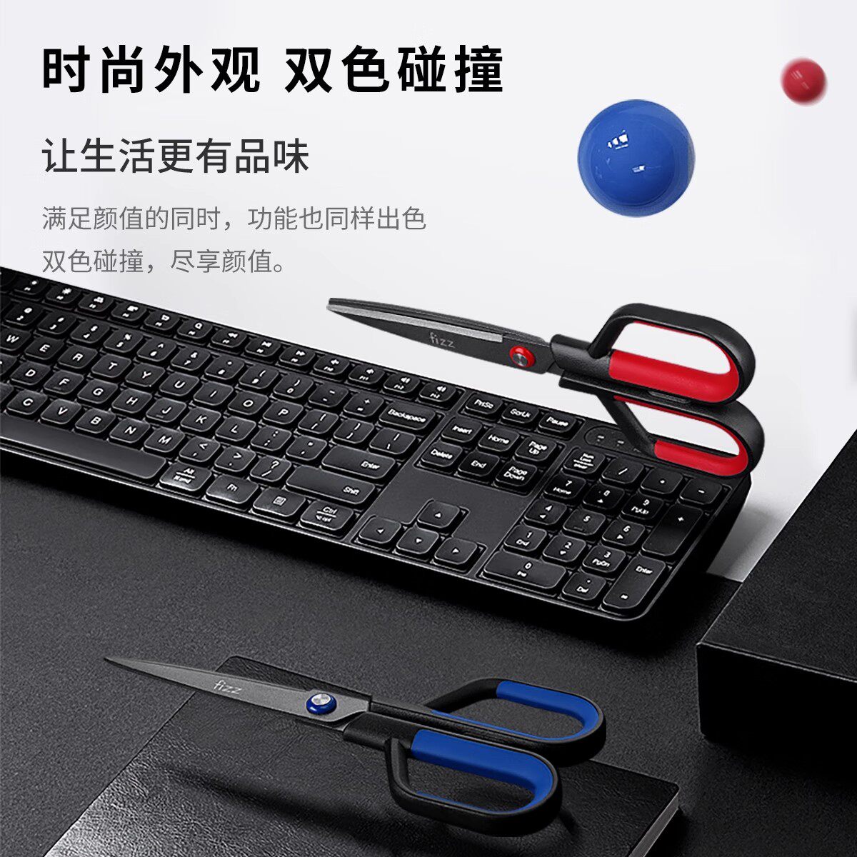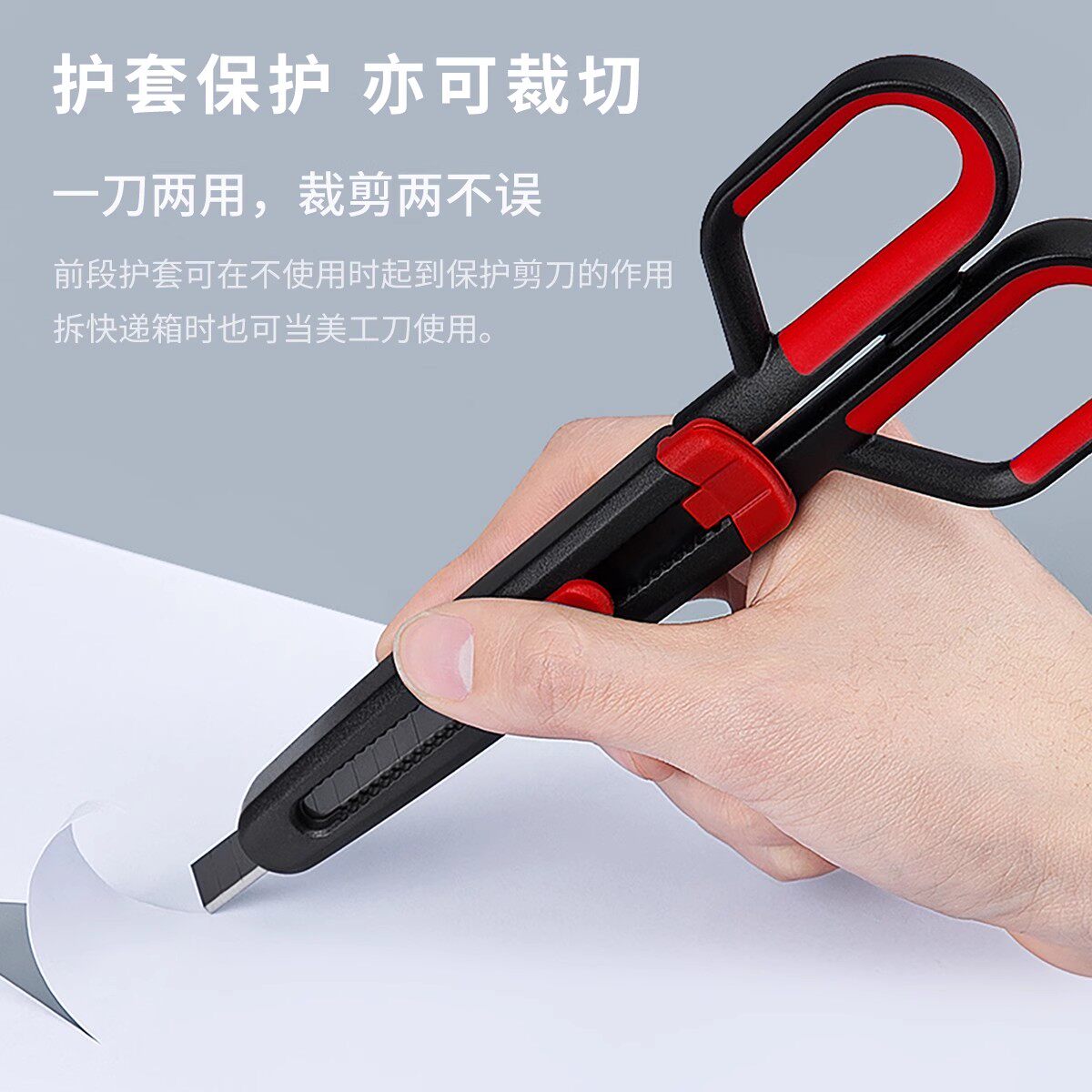 广博fizz二合一剪刀美工刀家用剪子不锈钢裁纸刀不沾特氟龙不粘胶办公小剪刀学生专用拆快递开箱小刀带保护套