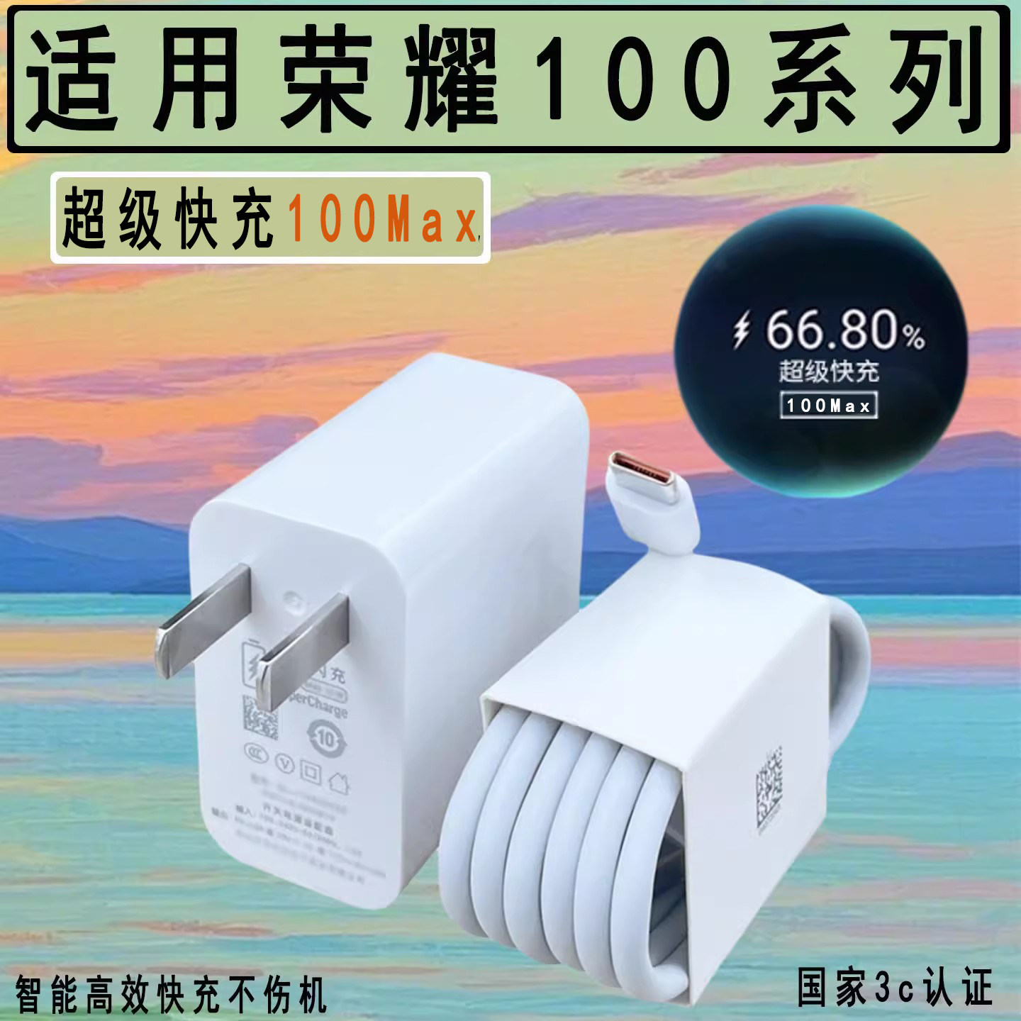 适用荣耀100充电器max超级快充插头荣耀100pro充电头Max套装适用荣耀6A快充数据线华为荣耀100Pro闪充线加长