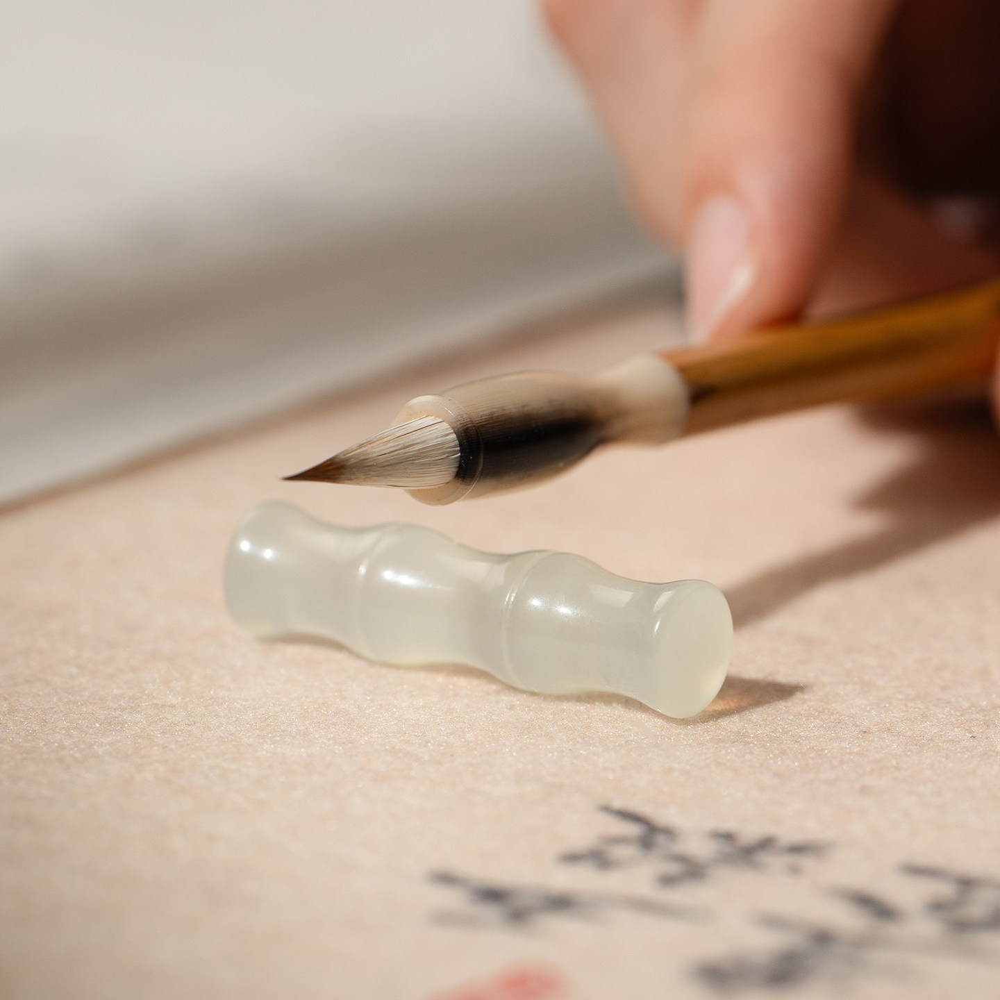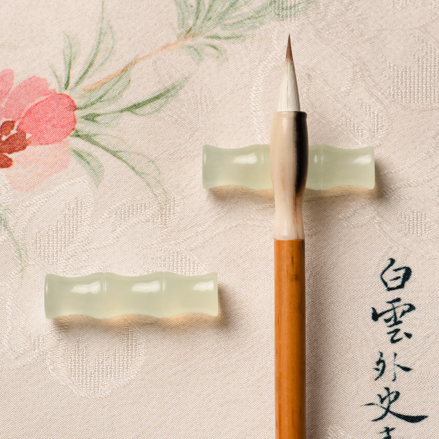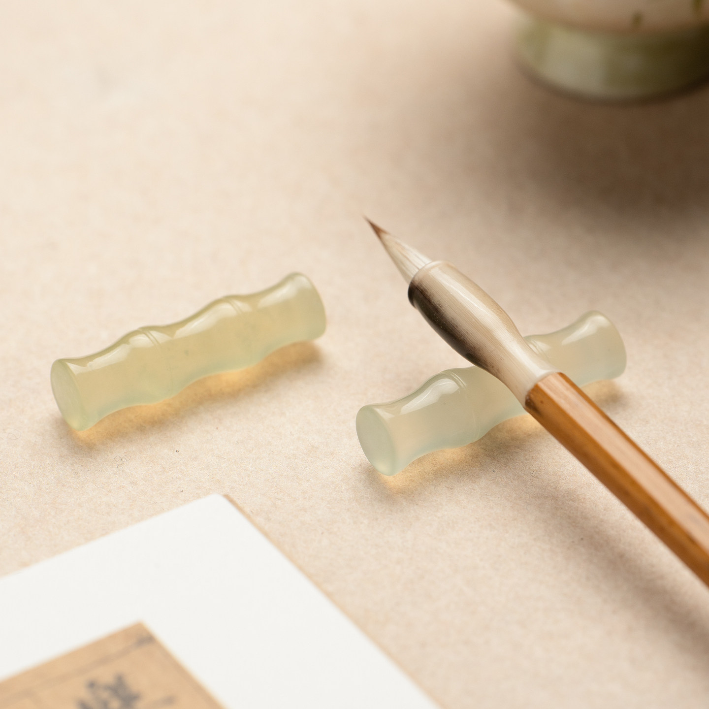 张小凤 竹节岫玉笔搁毛笔架托笔山放毛笔书法笔搁天然玉石高冰文房四宝摆件创意中式高颜值