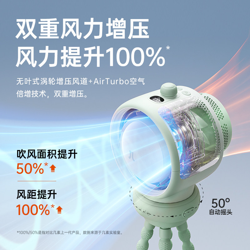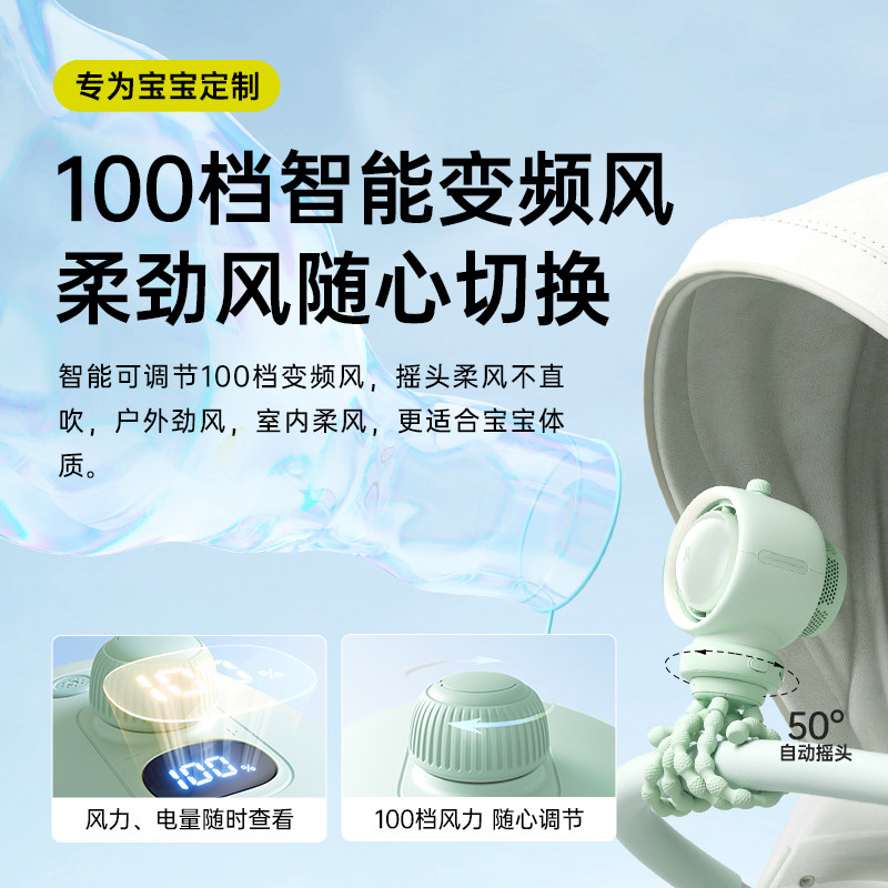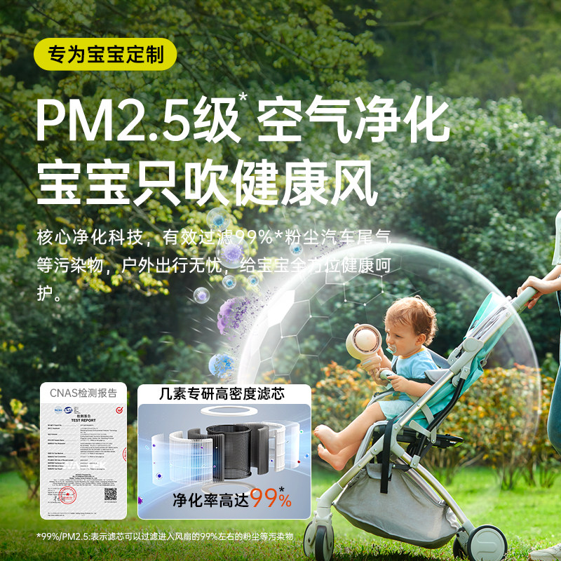 几素婴儿车风扇八爪鱼超长续航无叶可摇头空气净化充电便携式驱蚊静音户外桌面儿童宝宝手推车婴儿床防夹手宝