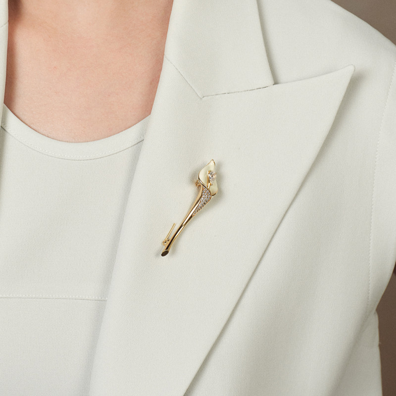 Fellala/翡拉拉「马蹄莲」原创华丽雾金质感花朵胸针送礼甄选