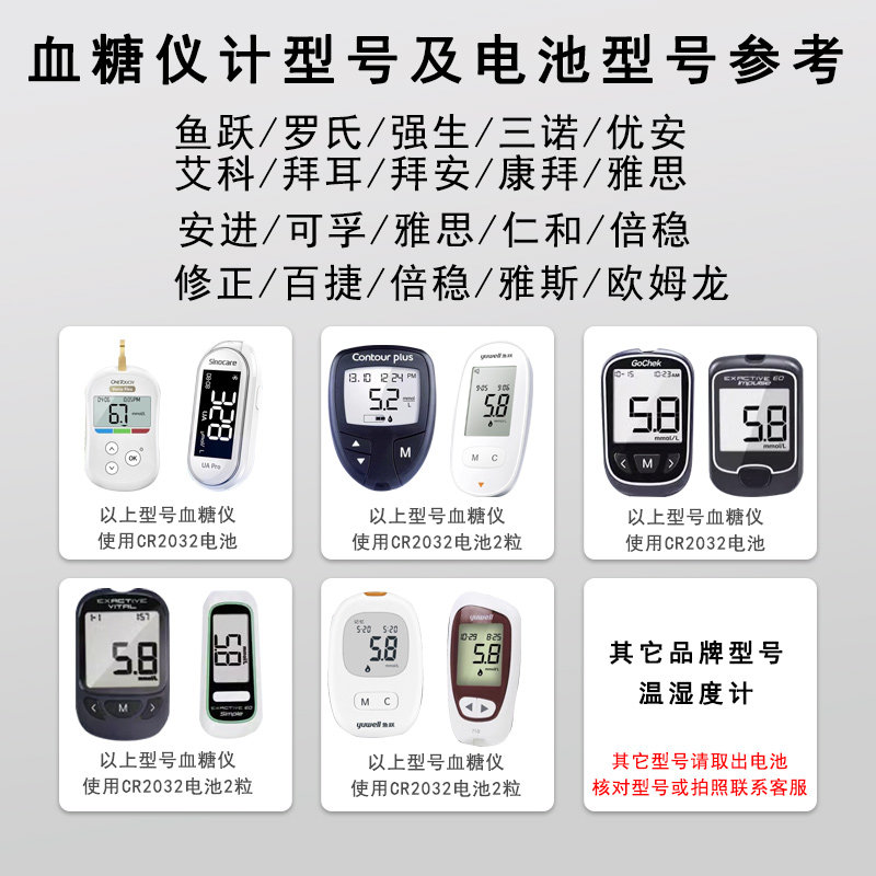 适用鱼跃罗氏强生三诺可孚泰尔茂修正仁和雅培雅斯百捷艾科倍稳拜耳拜安康拜安进血糖仪电池CR2032纽扣电子