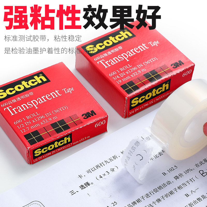正品3M600思高Scotch高级透明百格测试胶带12.7mm-19mm*32.9米长