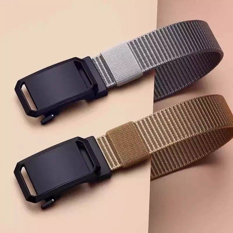 对插扣弹力皮带男自动扣时尚百搭潮流男士腰带户外尼龙帆布裤腰带