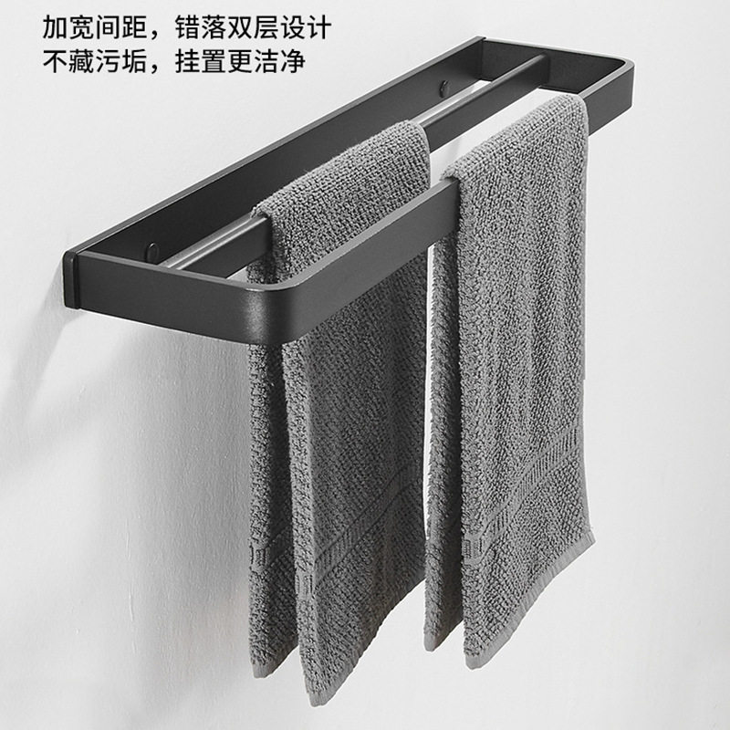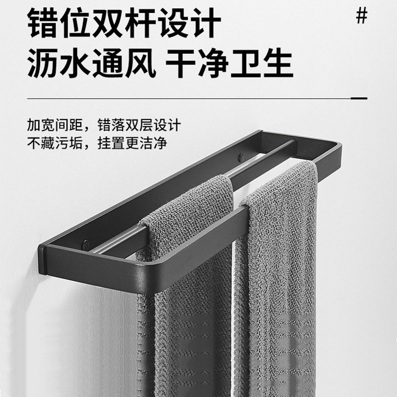 毛巾杆双杆高级品质浴室黑色浴巾架毛巾架卫生间五金挂件温州工厂