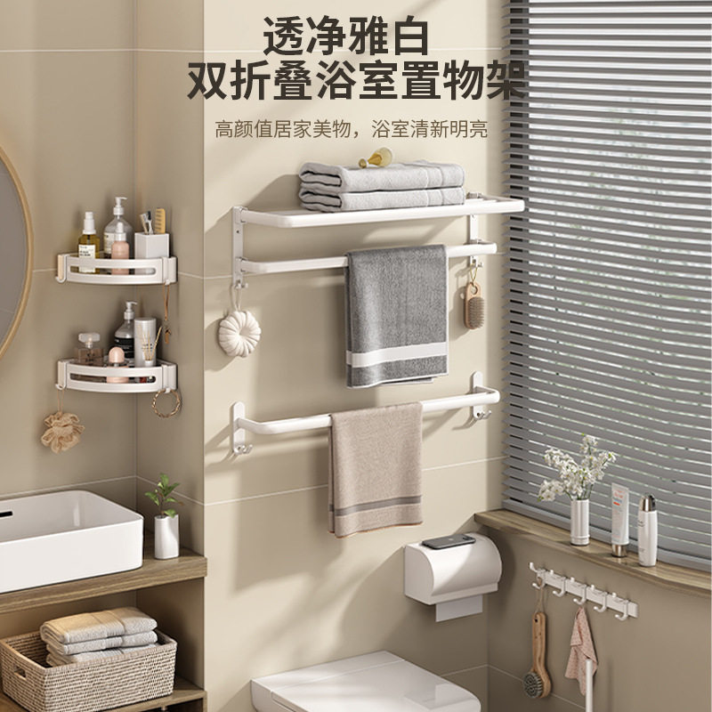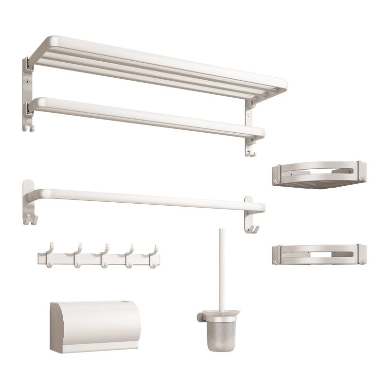 白色毛巾架免打孔太空铝置物架浴室浴巾架杆厕所卫浴五金挂件套装