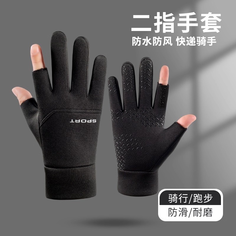 露二指骑行手套保暖冬季触屏韩版毛绒防寒漏指骑车办公写字神器
