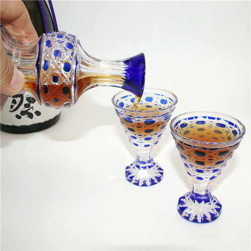 日式江户切子清酒壶清酒杯烈酒杯蓝色水晶玻璃杯子手工刻花杯家用