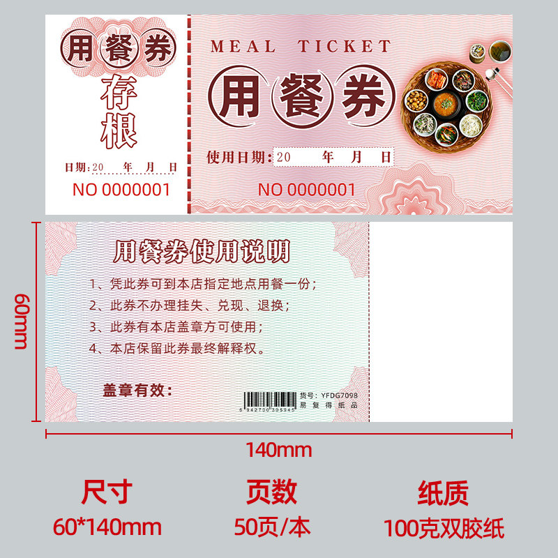 酒店宾馆自助早餐券用餐券饭票午晚就餐券优惠奖券代金券印刷定做