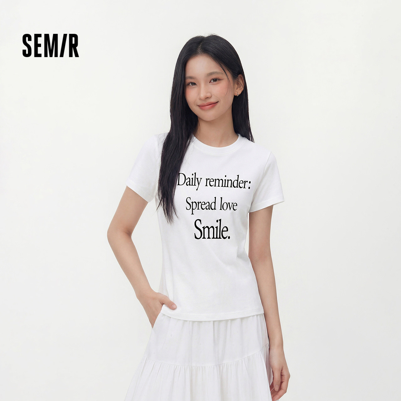 陈都灵丨凉感T森马短袖T恤女修身纯色基础夏季新款圆领白色女装