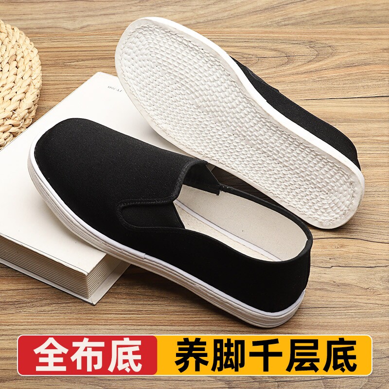男鞋老北京布鞋防滑耐磨牛筋底劳保工作鞋懒人一脚蹬牛仔帆布板鞋