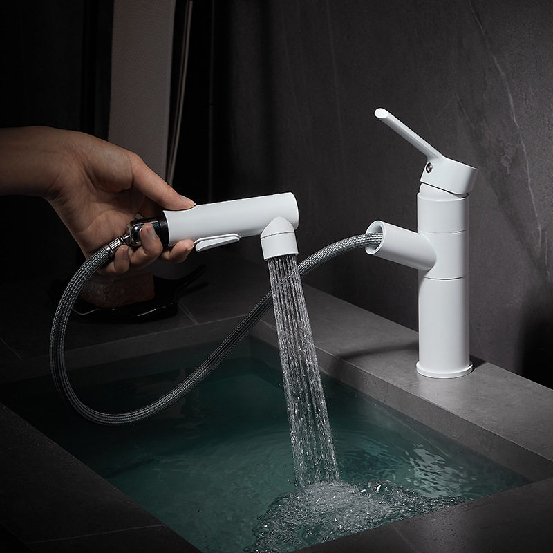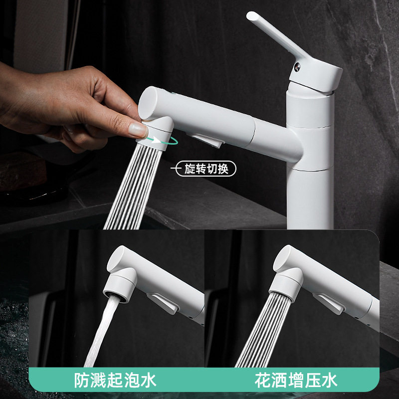 飞宇诺面盆抽拉水龙头卫生间家用浴室柜洗漱台冷热防溅水龙头白色