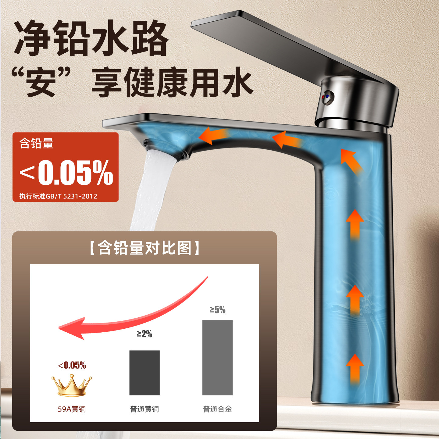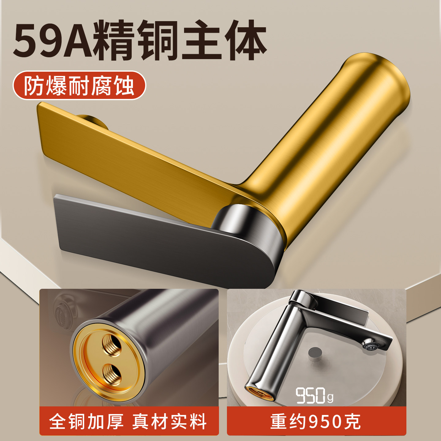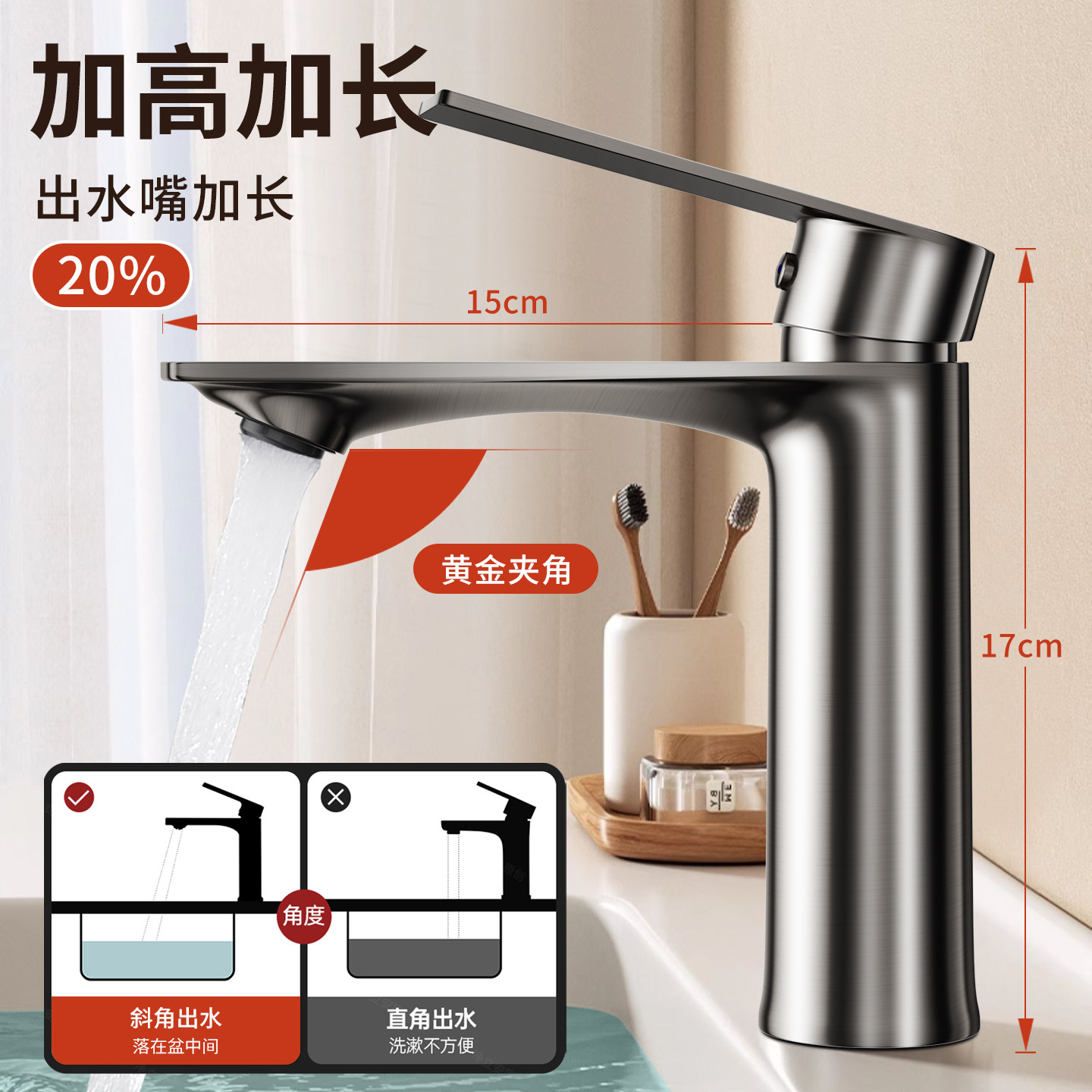 铜洗脸盆水龙头冷热两用二合一家用洗手盆卫生间面盆浴室加长热水