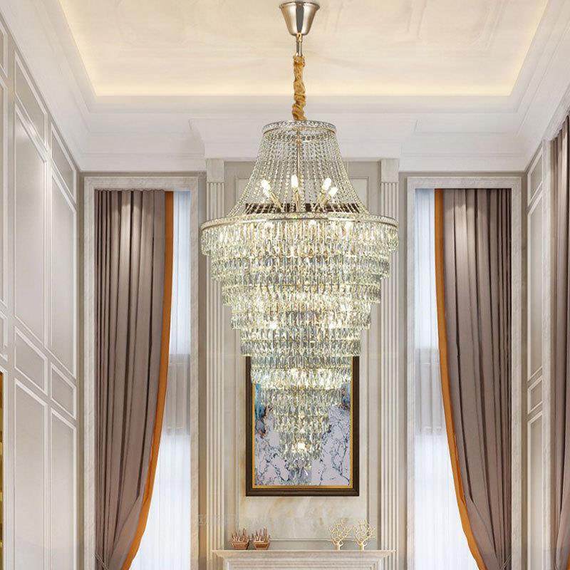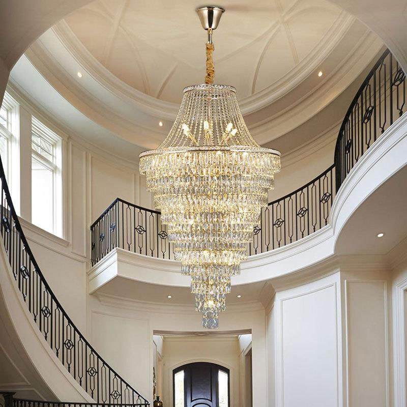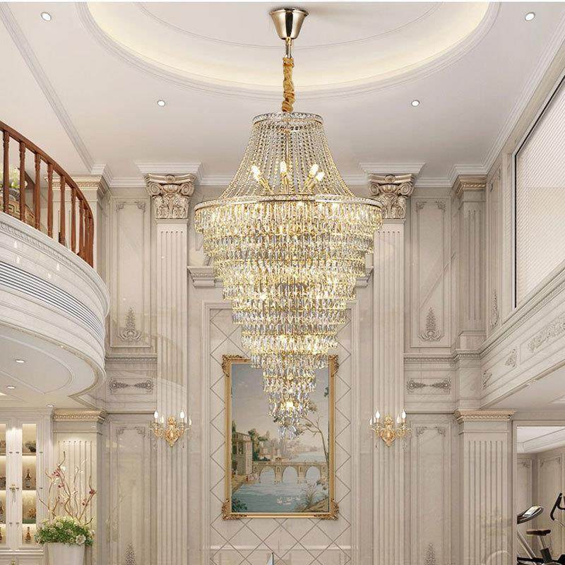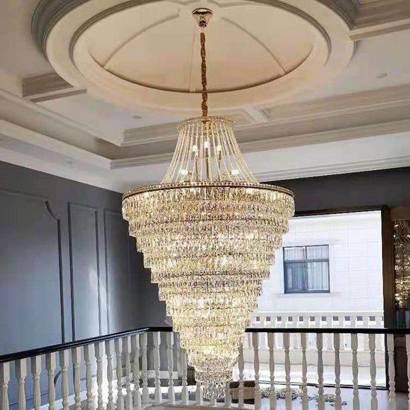 复式楼大吊灯别墅客厅中空简约楼中楼跃层长水晶旋转楼梯灯led