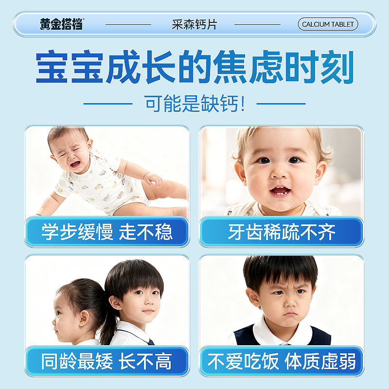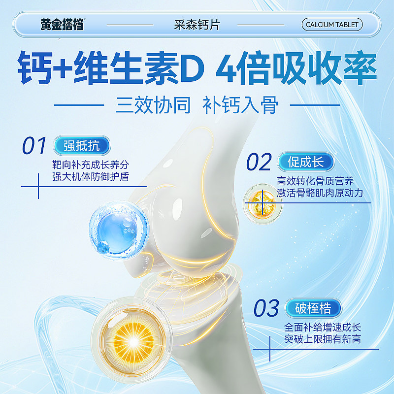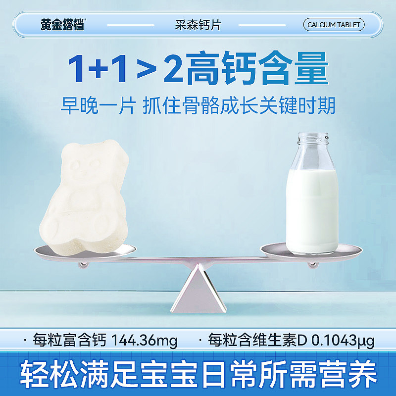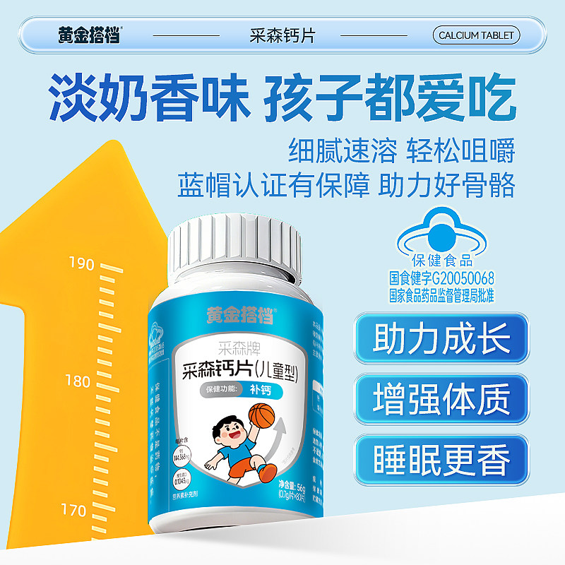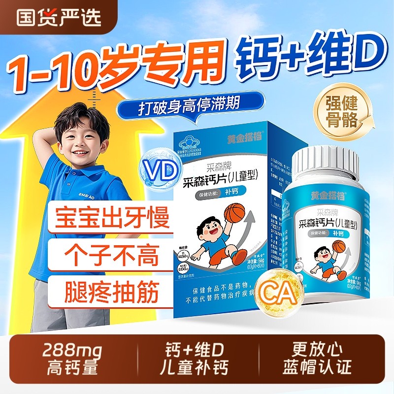 黄金搭档儿童钙片长高青少年6到12岁d3补钙成长专用维生素高钙