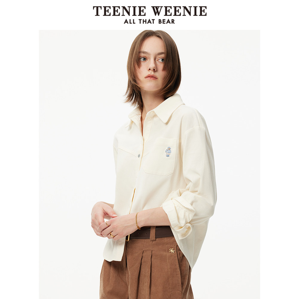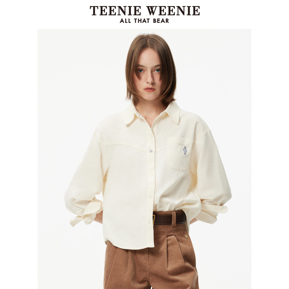 TeenieWeenie小熊奥莱女装衬衫冬季简约休闲时尚拼接纯色衬衣