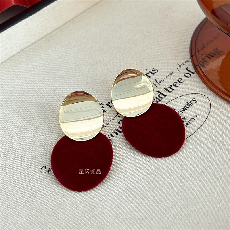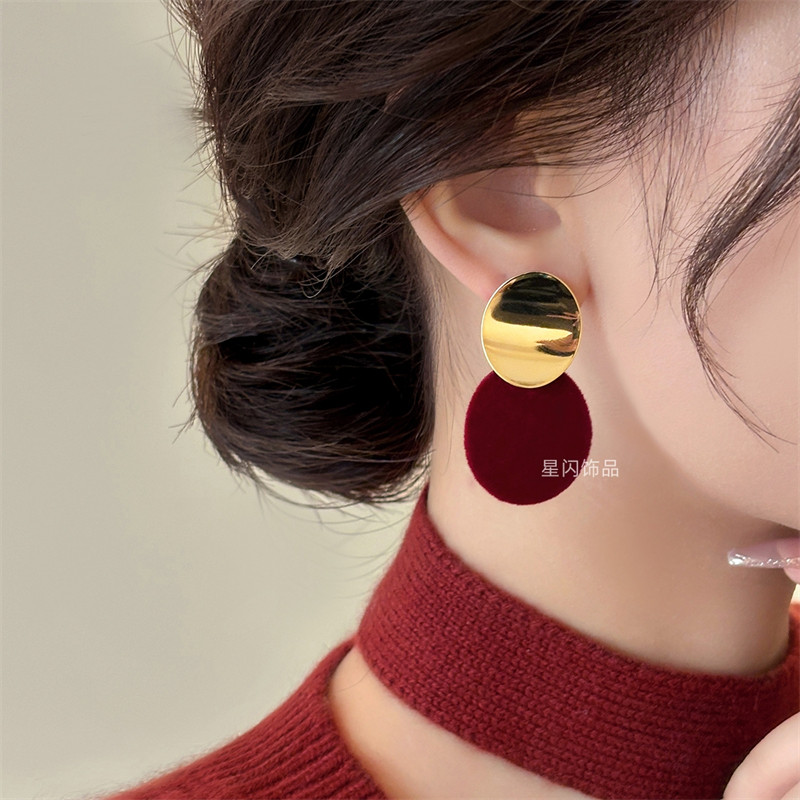 安可拉红圆片耳环纯银小众独特丝绒耳钉2025高级耳饰925银几何