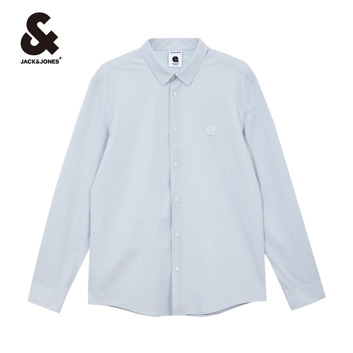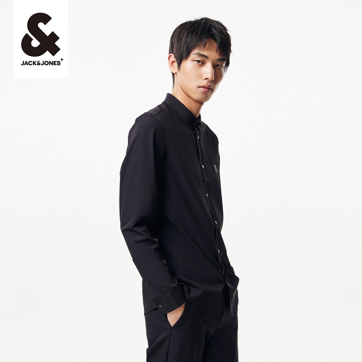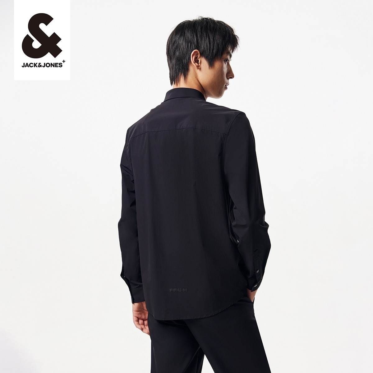 杰克琼斯2024春季新款男士直筒翻领logo胶印长袖纯色衬衫男款男装