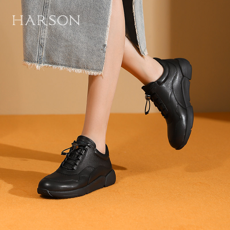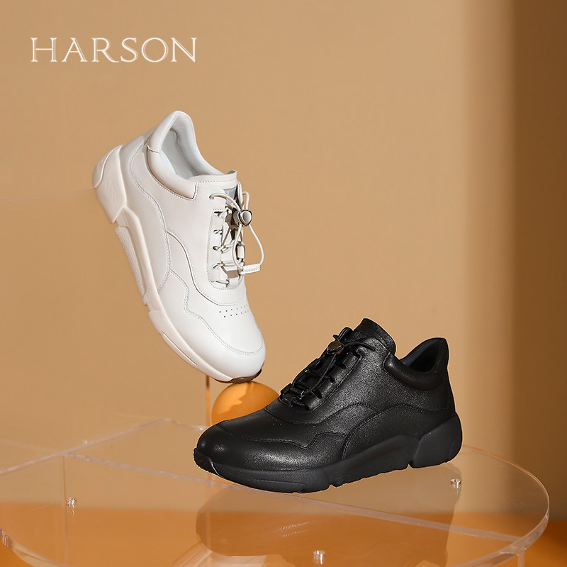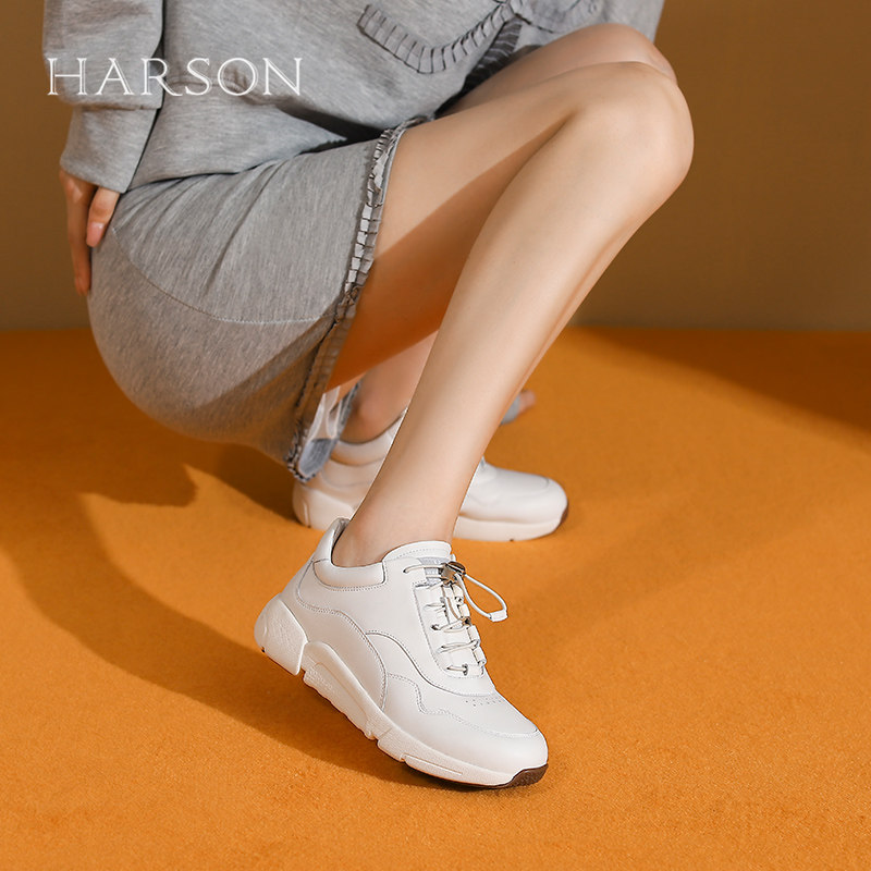 哈森女鞋子秋冬季新款运动休闲鞋厚底增高纯色小白鞋HCA246105