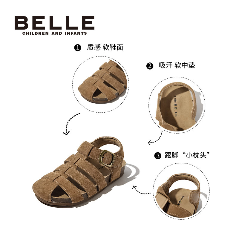 百丽童鞋儿童猪笼鞋夏季新款宝宝包头鞋女童勃肯凉鞋男童沙滩鞋子