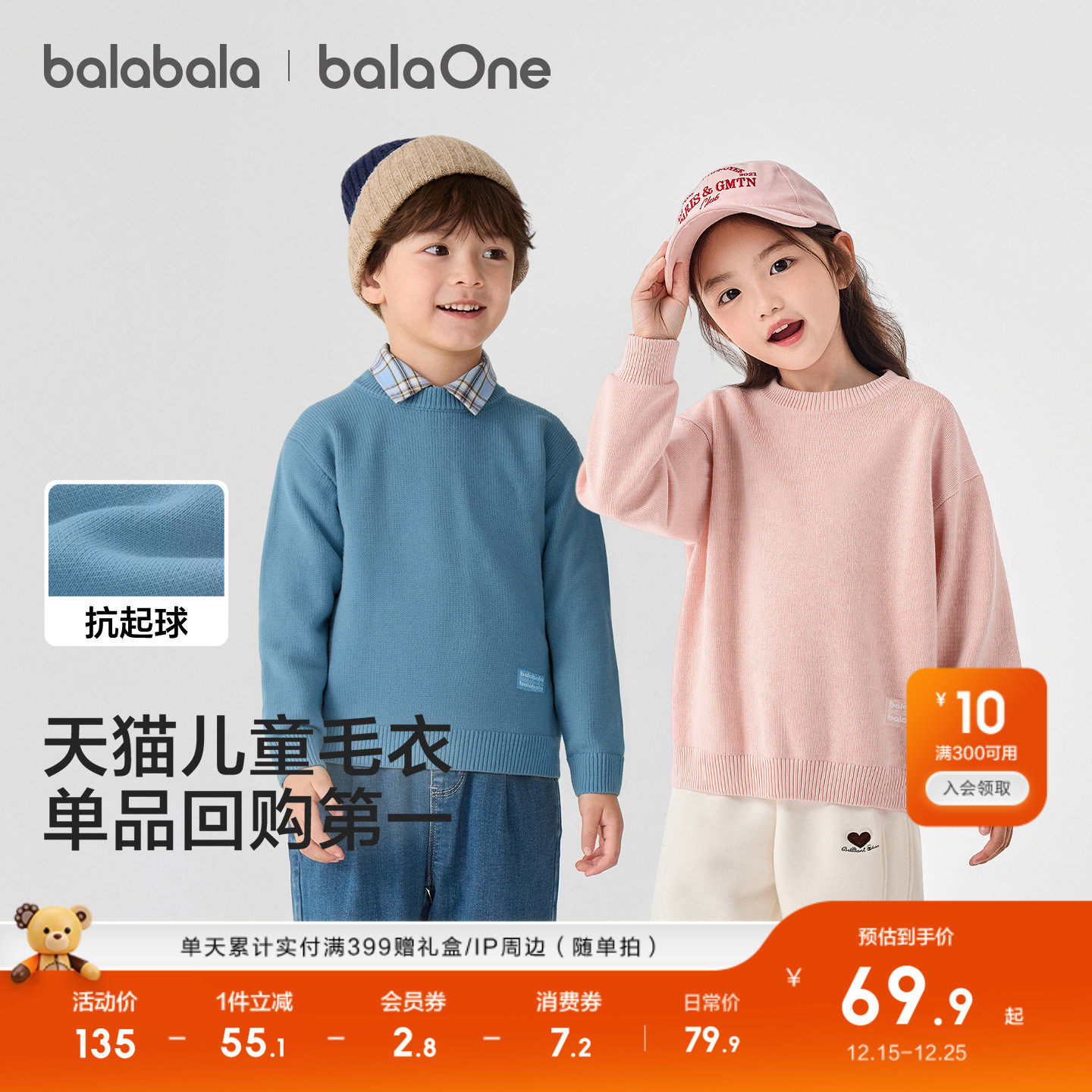 巴拉巴拉童装儿童毛衣男童女童2025新款秋冬宝宝套头毛衫针织打底