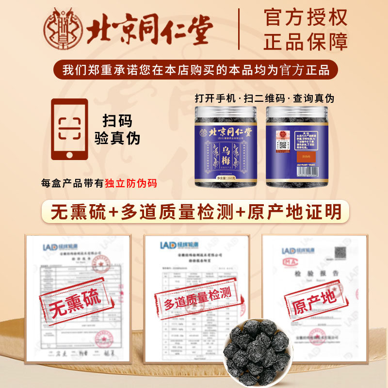 北京同仁堂乌梅干新鲜果肉中草药材泡水酸梅汤原料正品官方旗舰店