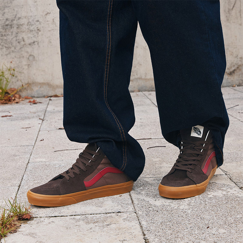 Vans范斯官方 SK8-Hi酒红色摩卡棕拼色生胶底男鞋女鞋板鞋