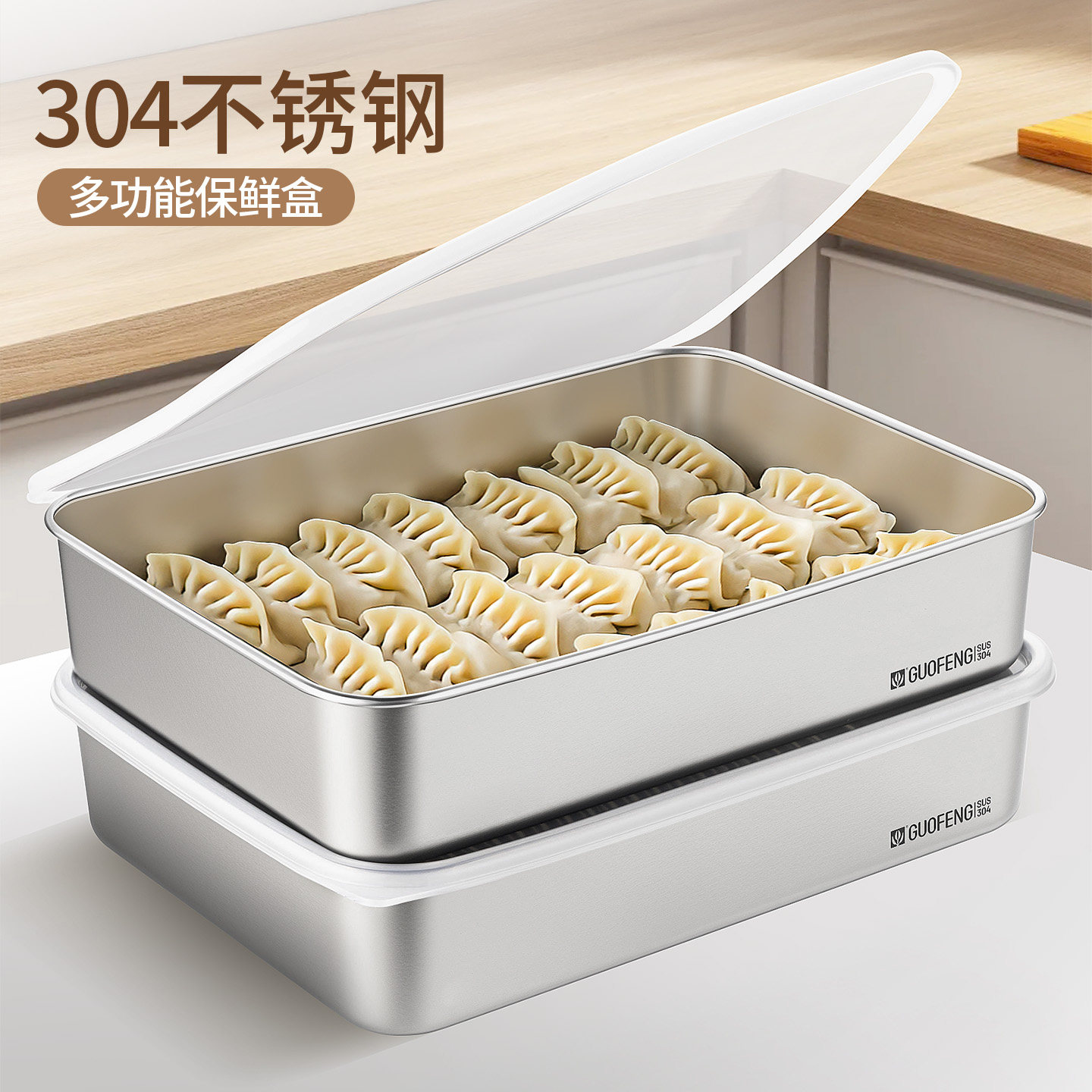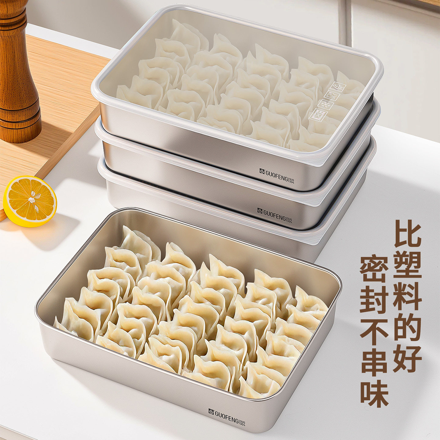 304不锈钢冷冻饺子盒家用冰箱专用速冻收纳盒子水饺云吞馄饨托盘