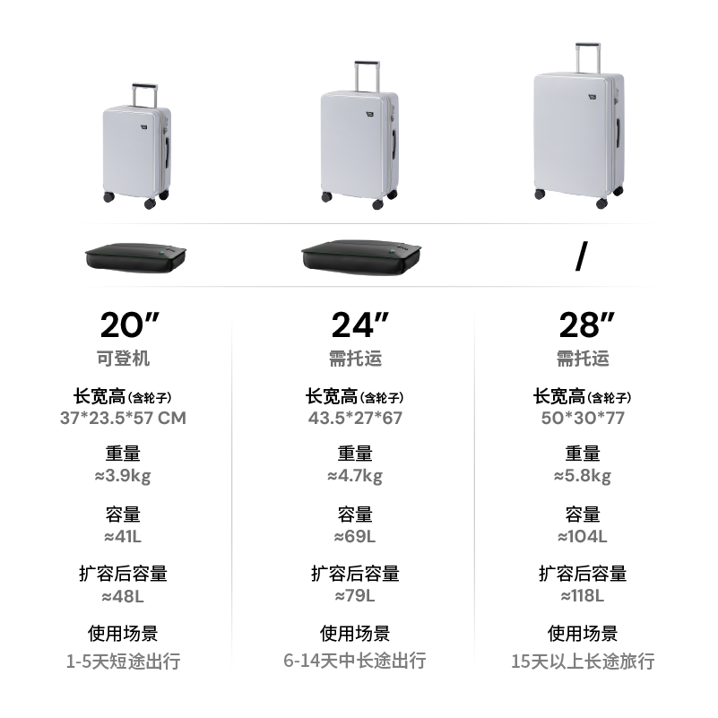 OPENWATER开放水域 大容量真空压缩行李箱可拆洗20寸24寸旅行箱