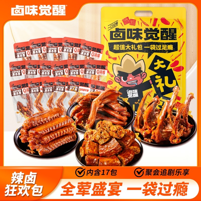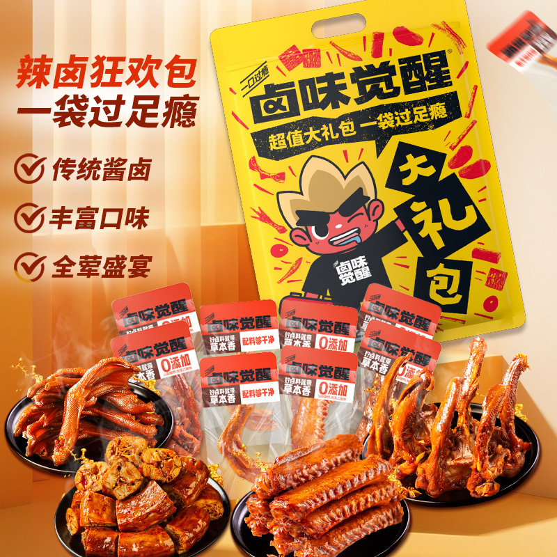 卤味觉醒老卤鸭脖鸭爪零食大礼包550g追剧解馋鸭货小吃熟食宵夜