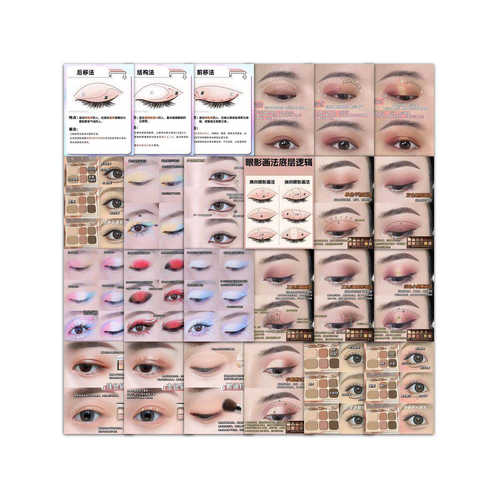 250张妆造教程美妆教学创意贴纸修容技巧+腮红画法+眼妆唇妆教程